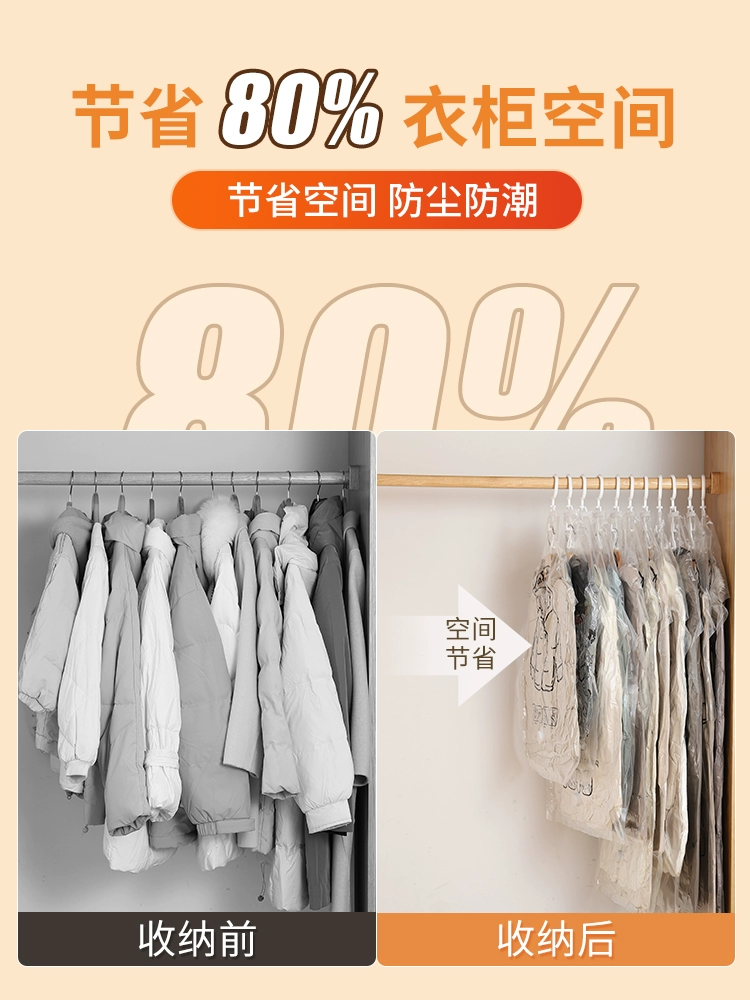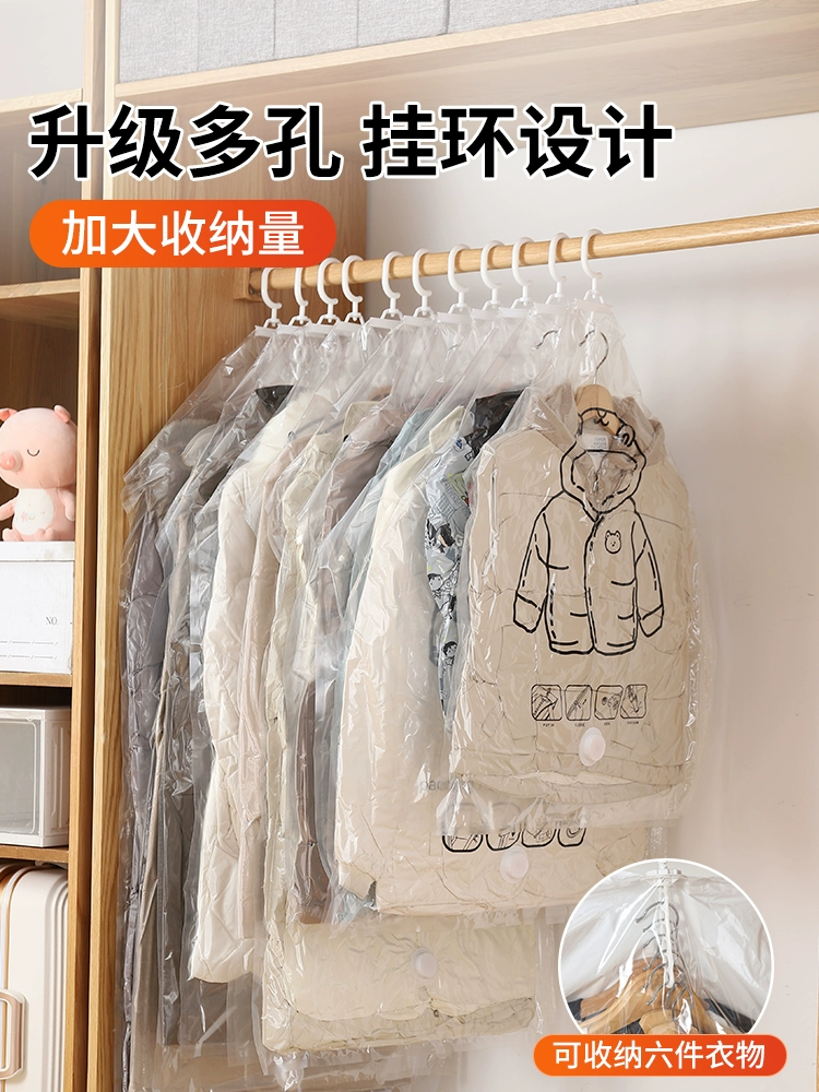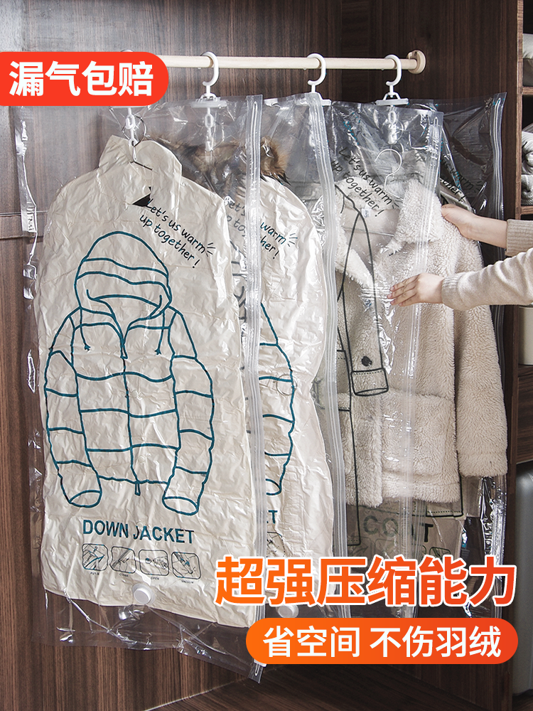 Down jacket storage bag, special thickened clothes hanging bag artifact, air-extracting hanging vacuum compression bag