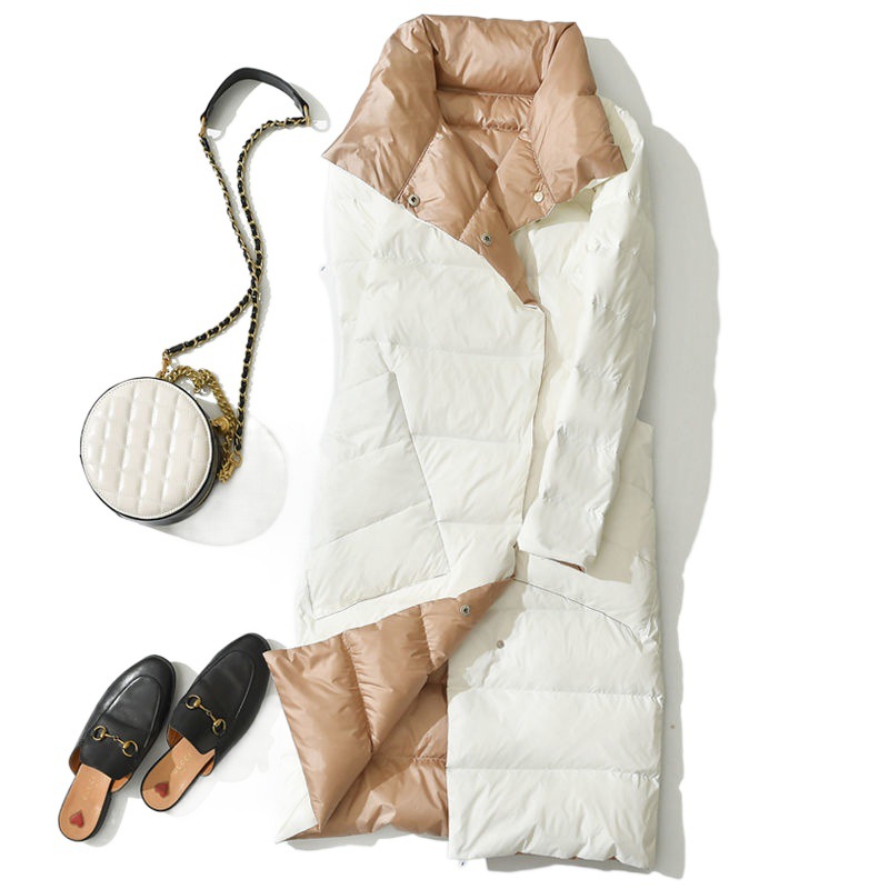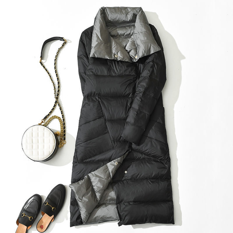 | nameOriginal | Down jacket winter double-sided wear white duck light Women's Korean-style double-sided wear mid-length over-the-knee loose thickened coat |