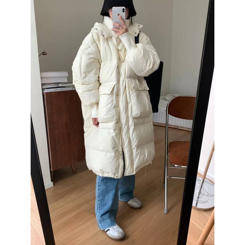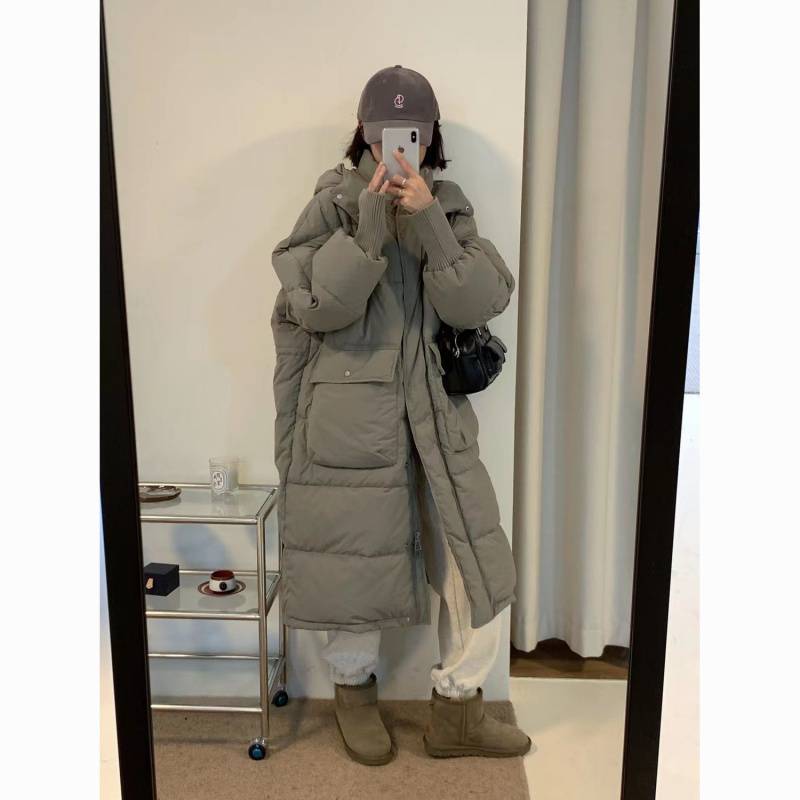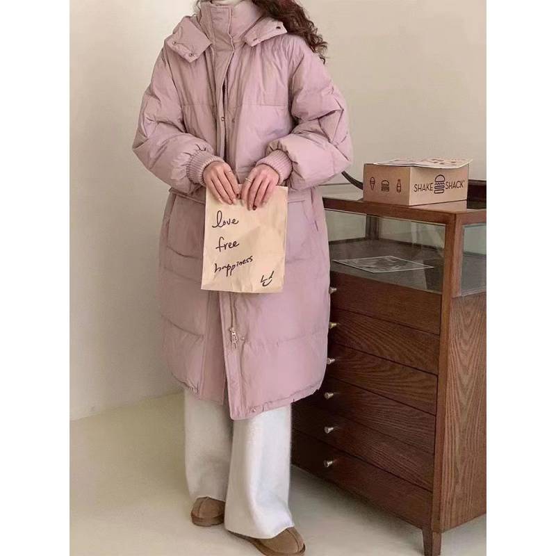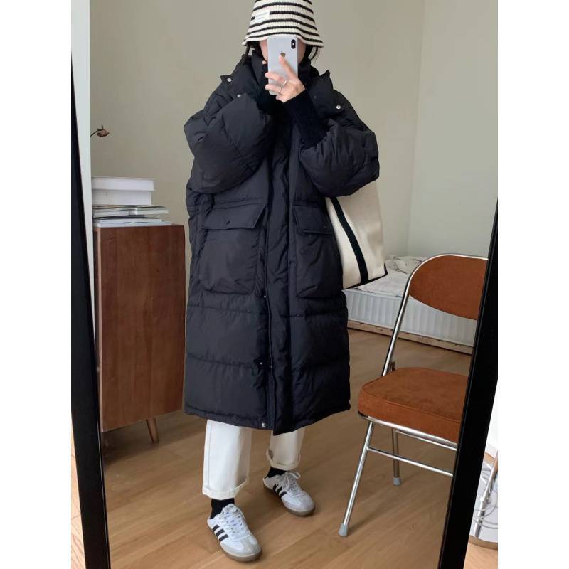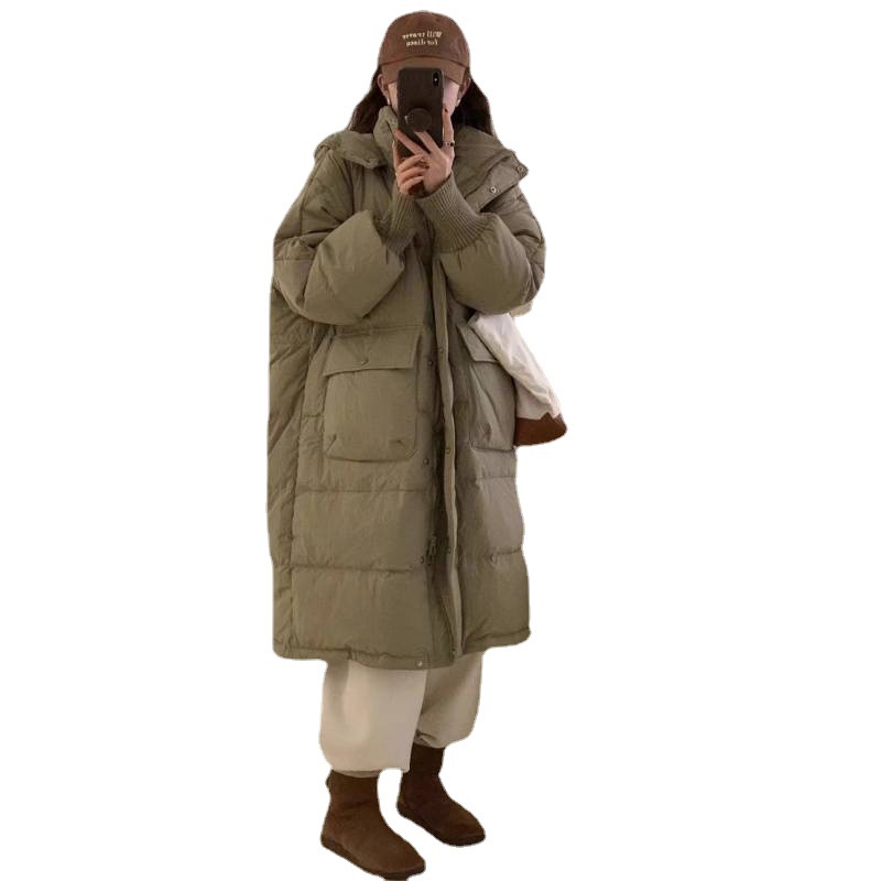 Down jacket women’s long over-the-knee 2023 Winter New loose solid color versatile thick hooded coat fashion