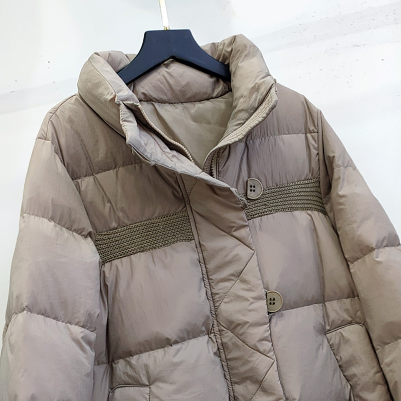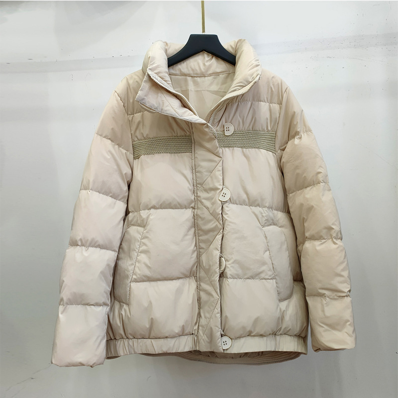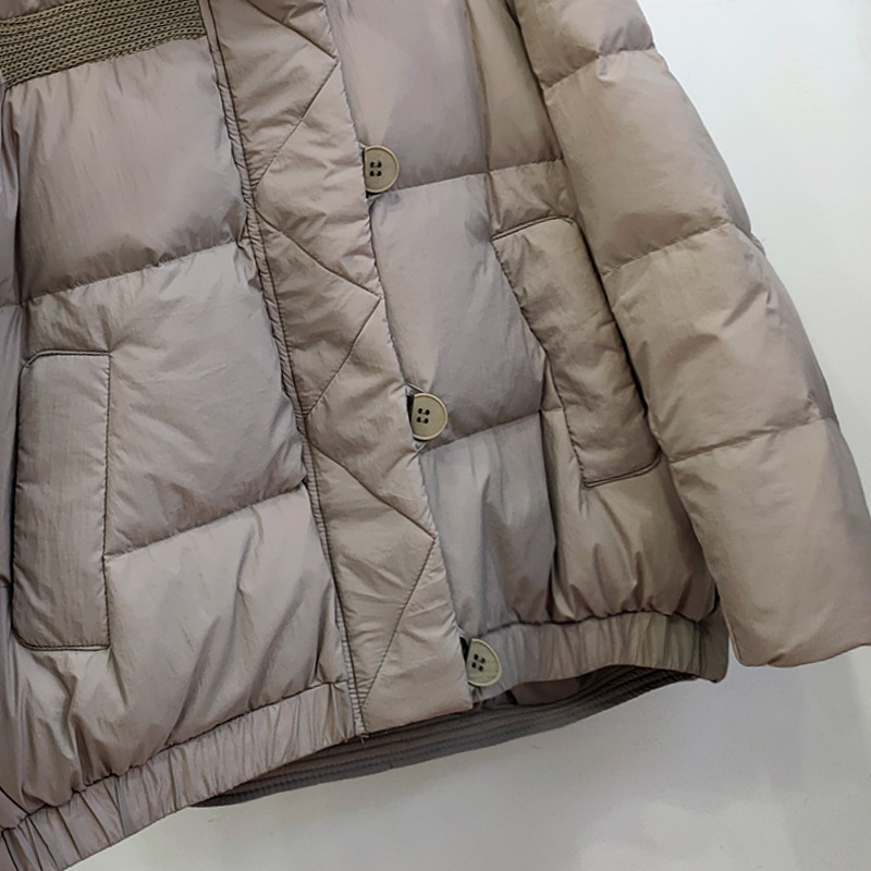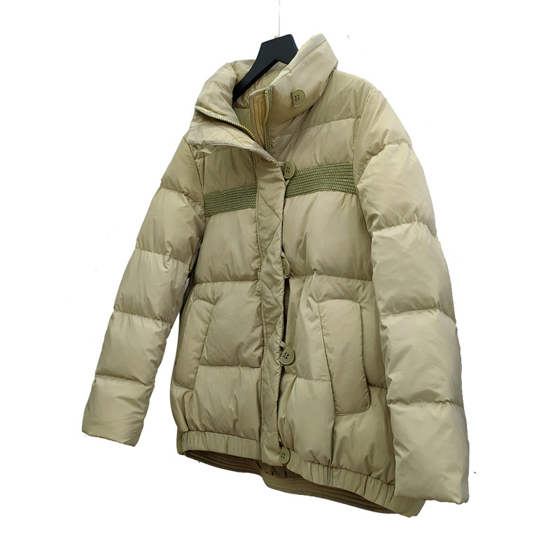 Down Jacket Women’s New Bread Suit Loose Fashion Thickened Half Buckle Design Vertical Collar Short White Duck Down Warm Jacket