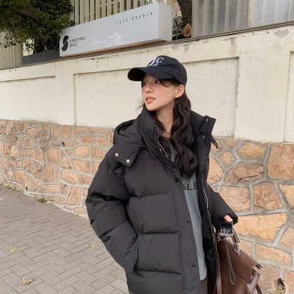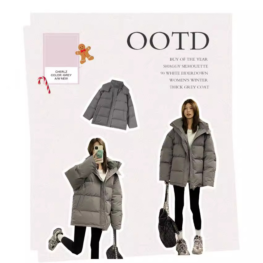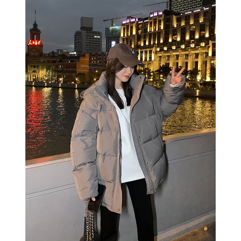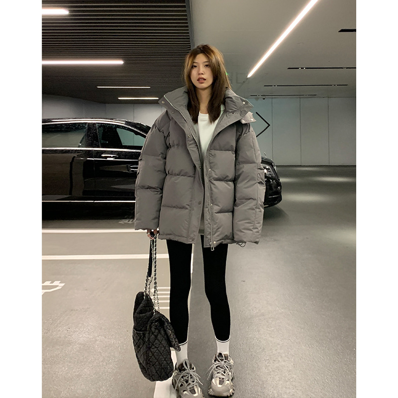 | nameOriginal | Down Jacket Women's Short 2024 Winter New Niche Design Sense Hooded Couple Thickened Grey Bread Coat |