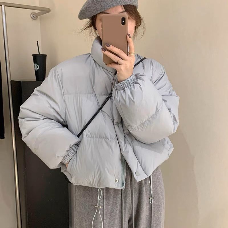 Down jacket women’s short Dongdaemun Korean style 2024 New loose stand collar small white duck down bread coat fashion