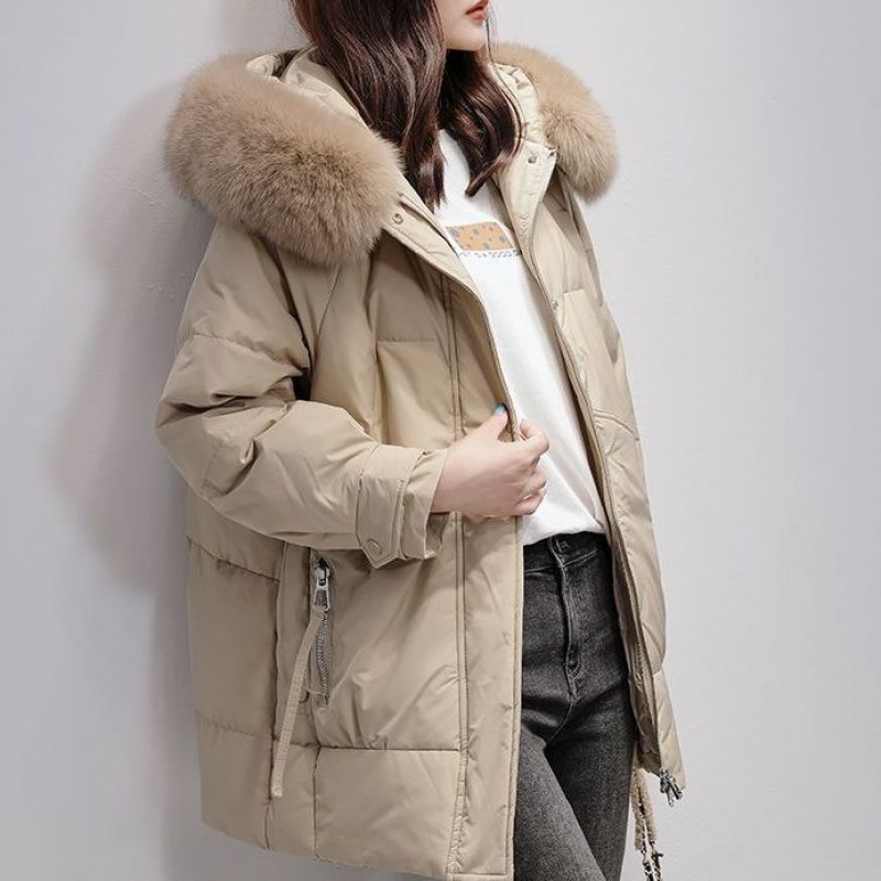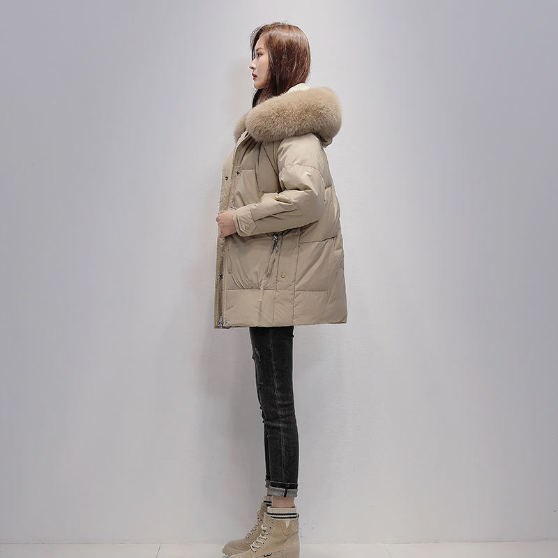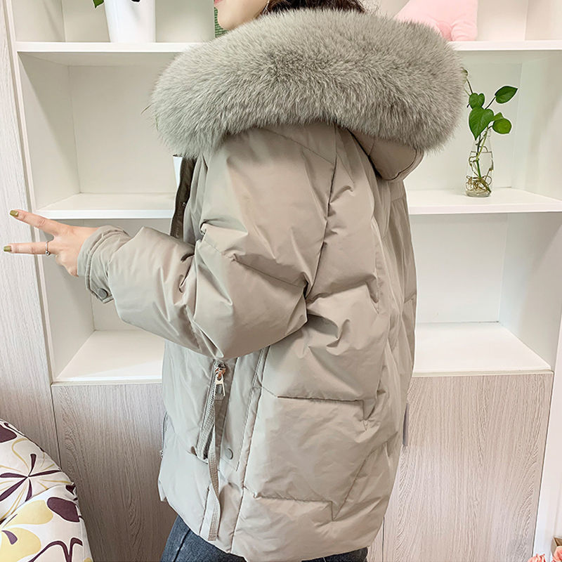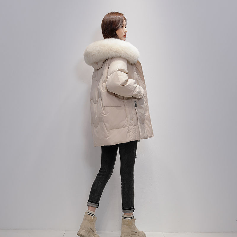 | nameOriginal | Down jacket women's white duck down large fur collar new female students Korean style mid-length slim fit loose coat trendy autumn and winter |