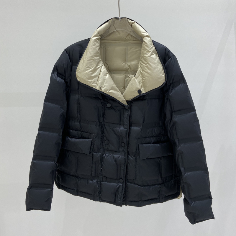 | nameOriginal | Down Jacket Women's Winter 2024 New High-end Double-sided Wear Fashionable White Duck Down Elegant Short Standing Collar Coat Trendy |