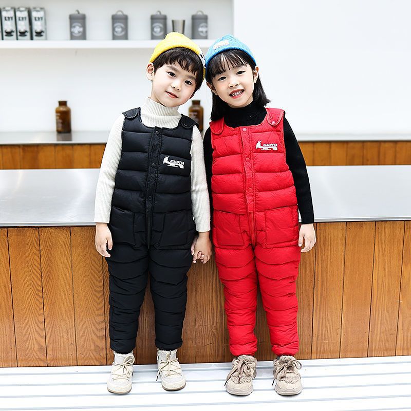 | nameOriginal | Down overalls infant new children's cotton suspender jumpsuit outer wear boys and girls winter cotton pants hot |