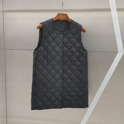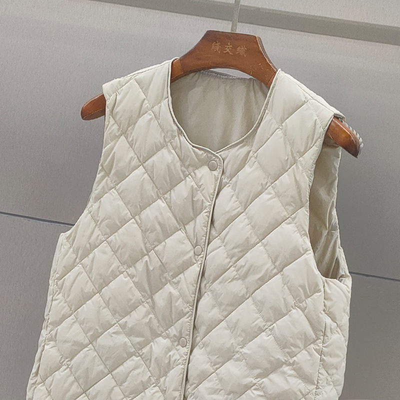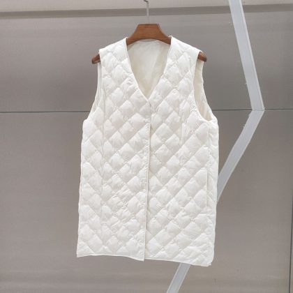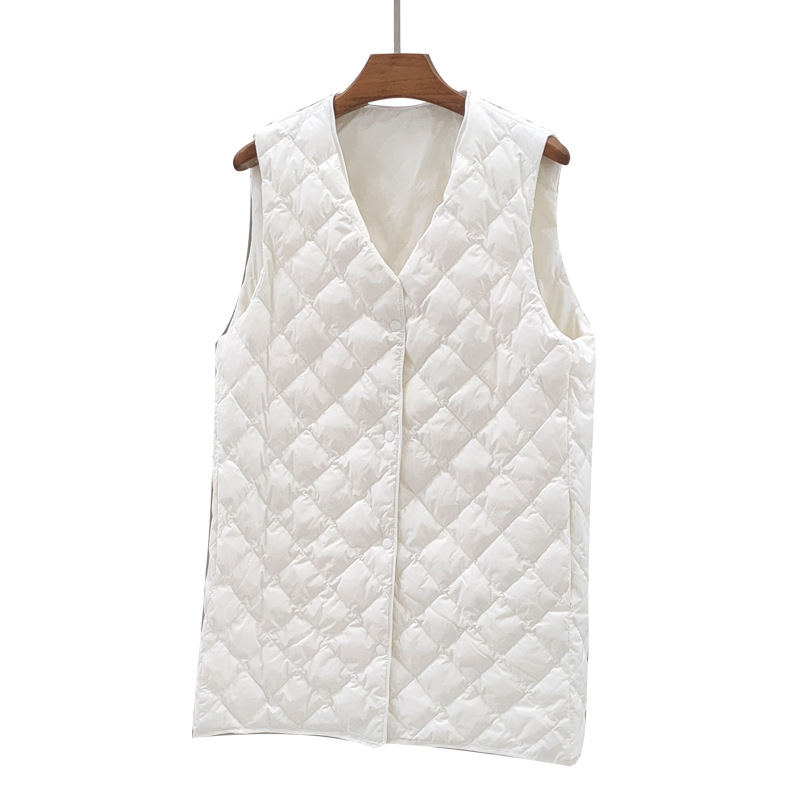 Down vest new mid-length V-neck trench coat with white duck down vest fashion rhombus slimming warm vest fashion