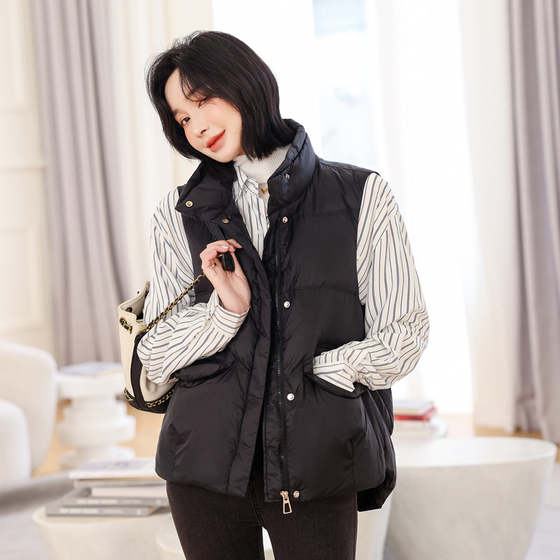 Down Vest Women's coat 2024 short black down vest 90 velvet white duck down women's sleeveless down jacket