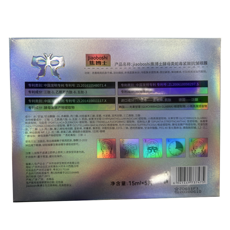 | nameOriginal | Dr. Jiao Yeast Snake Venom Tight Anti-wrinkle Eye Mold Desalinates Eye Pattern Portable and Easy to Use in Stock |