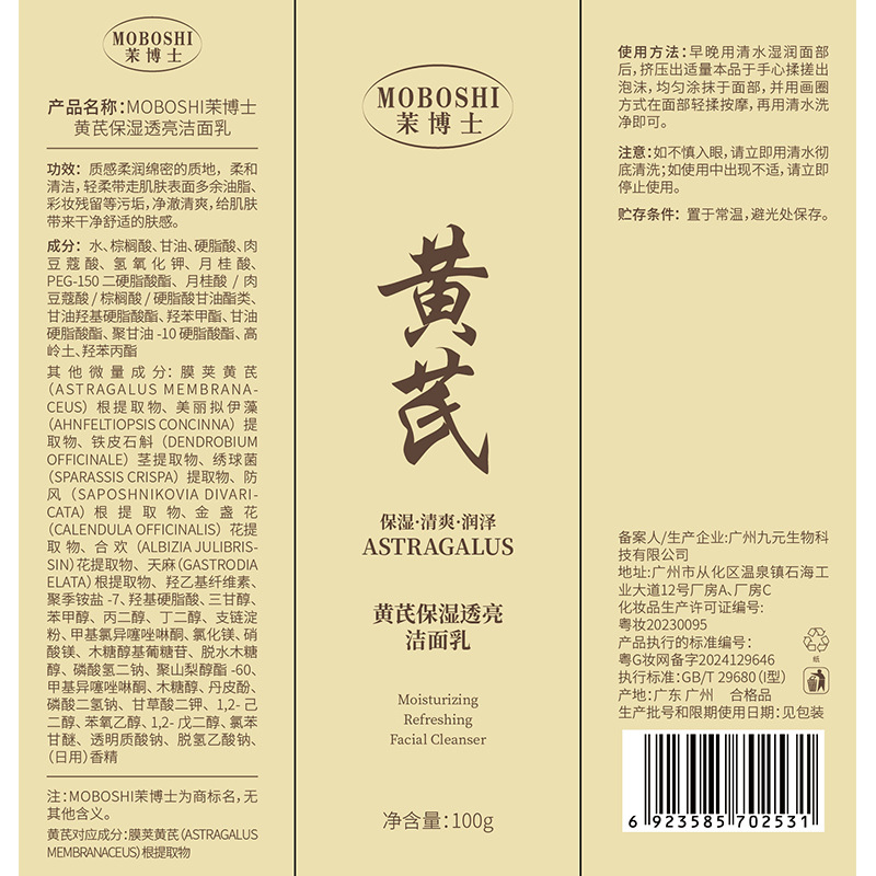 | nameOriginal | Dr. MOBOSHI Mo Astragalus Moisturizing Transparant Cleanser for Men and Women TikTok Explosions Astragalus Facial Cleanser |