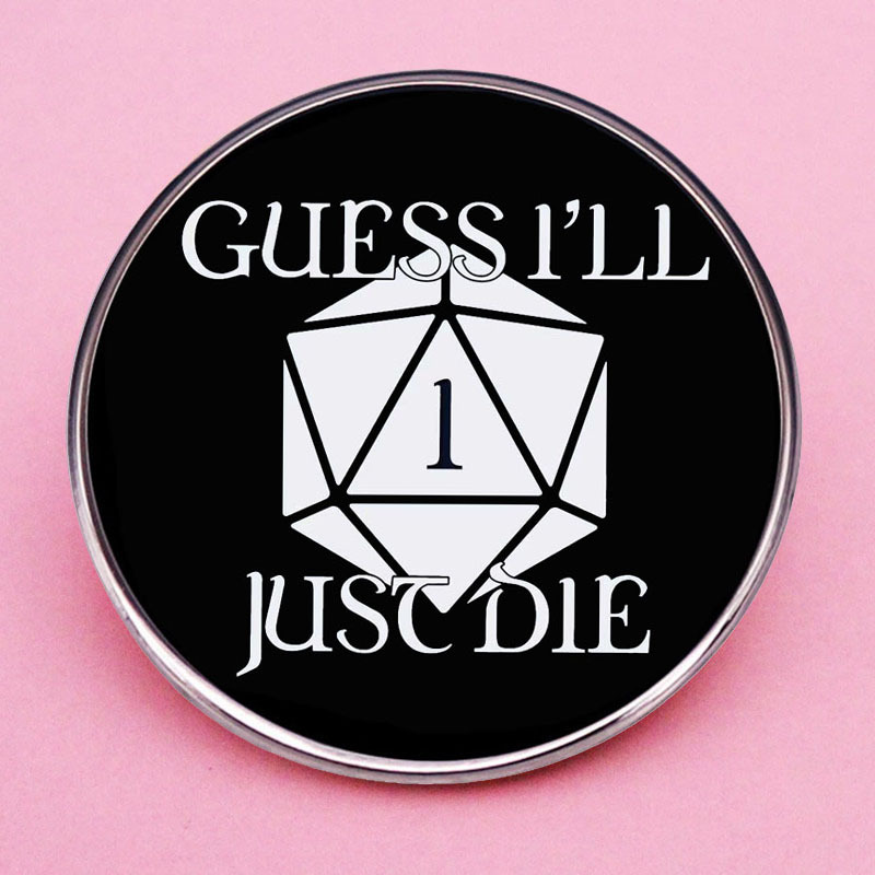 | nameOriginal | Dragon and Dungeon brooch I guess I will die dice game pin badge metal alloy badge accessories |