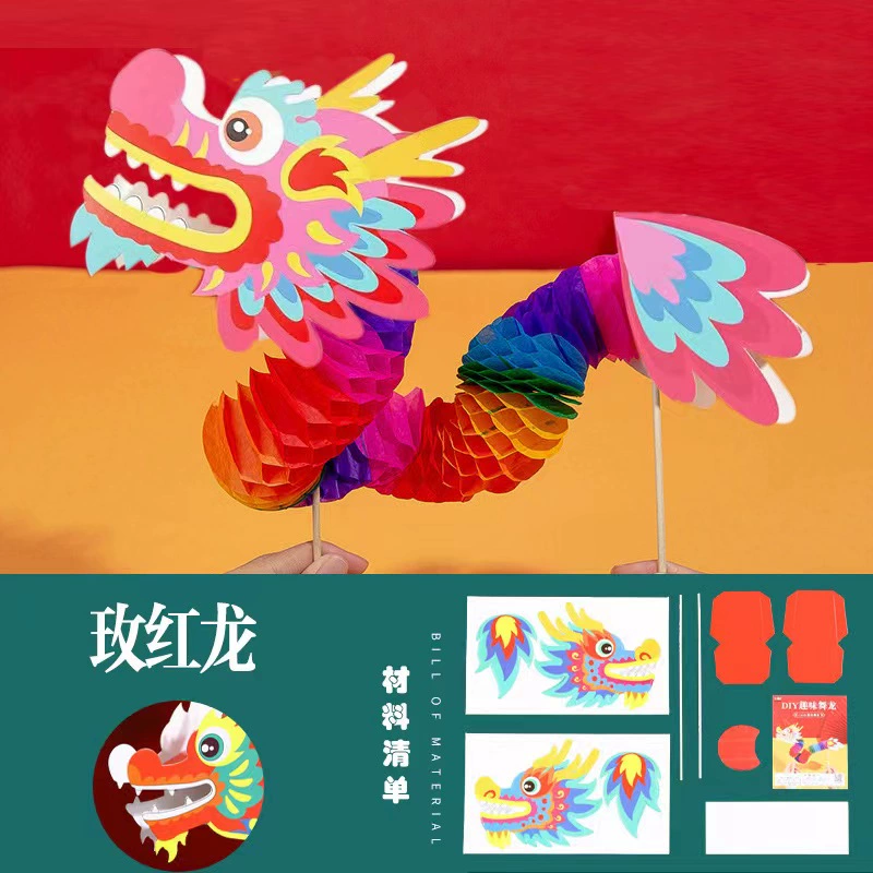 New Year’s New Year Dragon Dragon Children Handmade DIY Materials Chinese Wind Kindergarten Fun Turn Paper Dragon Lahua Taoist props