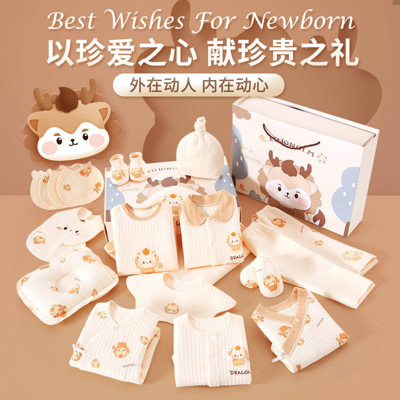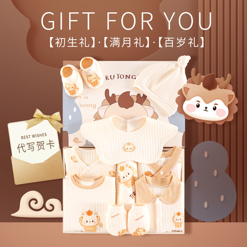 | nameOriginal | Dragon year baby clothes gift box New newborn male and female baby spring and autumn full moon face gift pure cotton suit pending supplies |