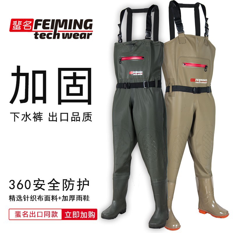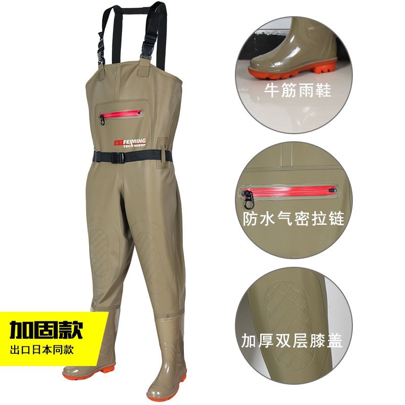 | nameOriginal | Drainage pants reservoir full-body waterproof rain pants with rain shoes conjoined waist-length fishing wading pants PVC adult men's |