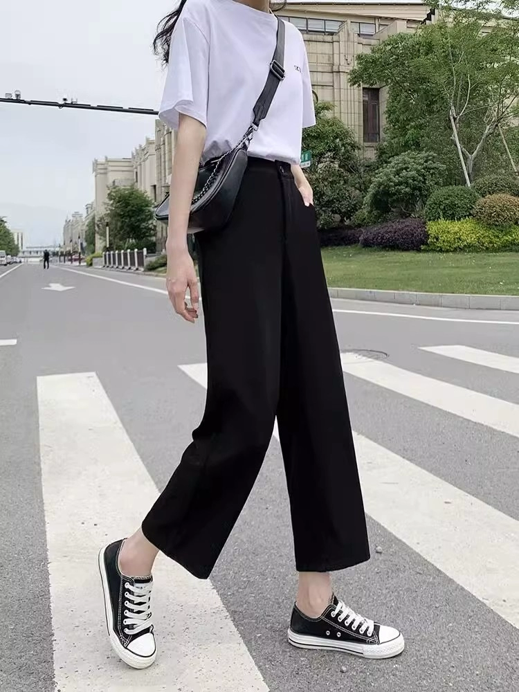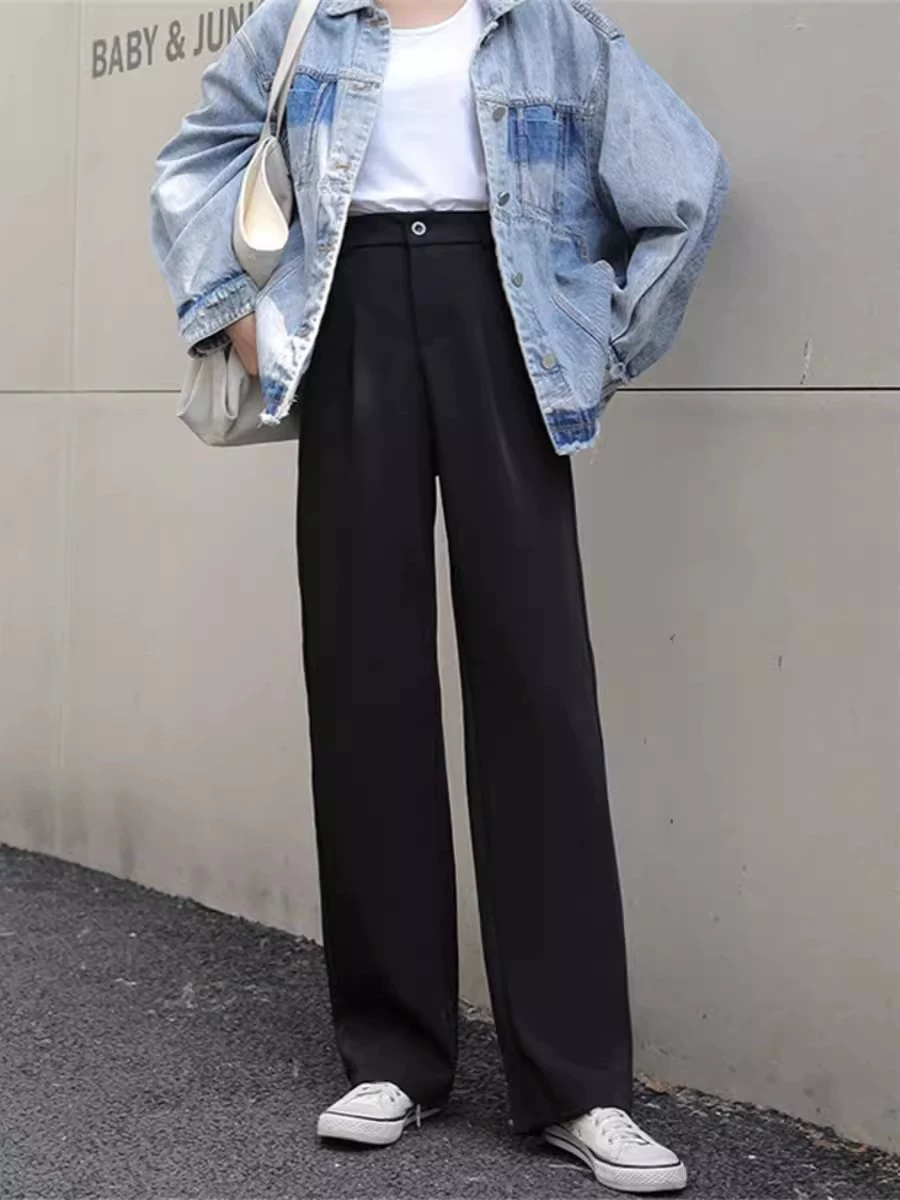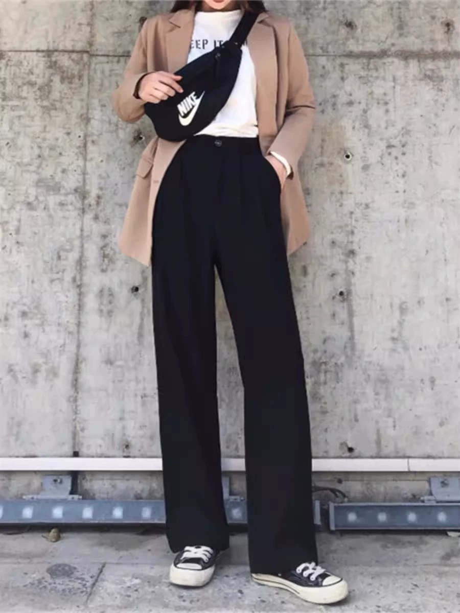 | nameOriginal | Drapey black high-waist professional casual floor-length wide-leg pants |
