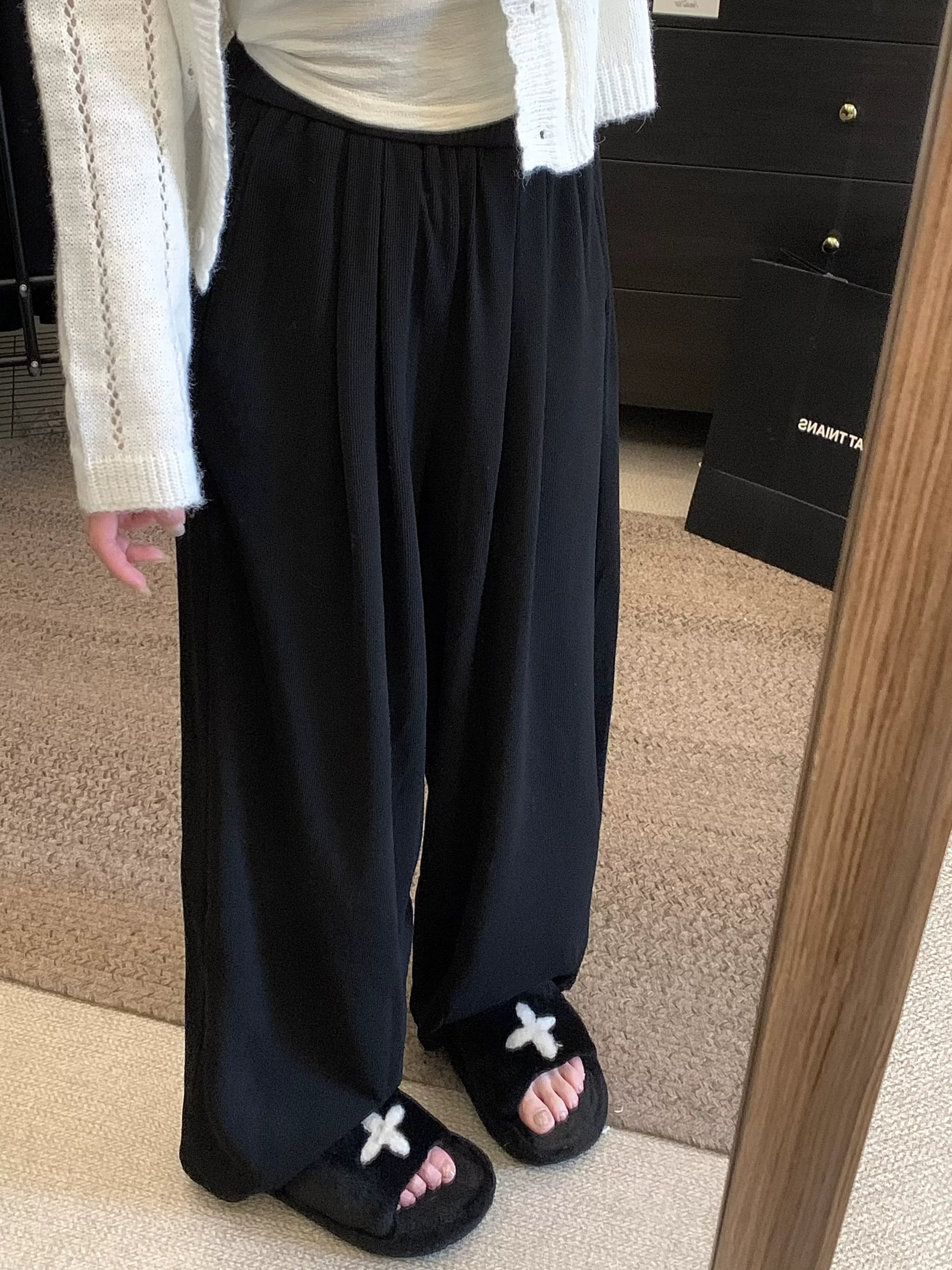 | nameOriginal | Drapey elastic waist slimming white floor-length casual pants |