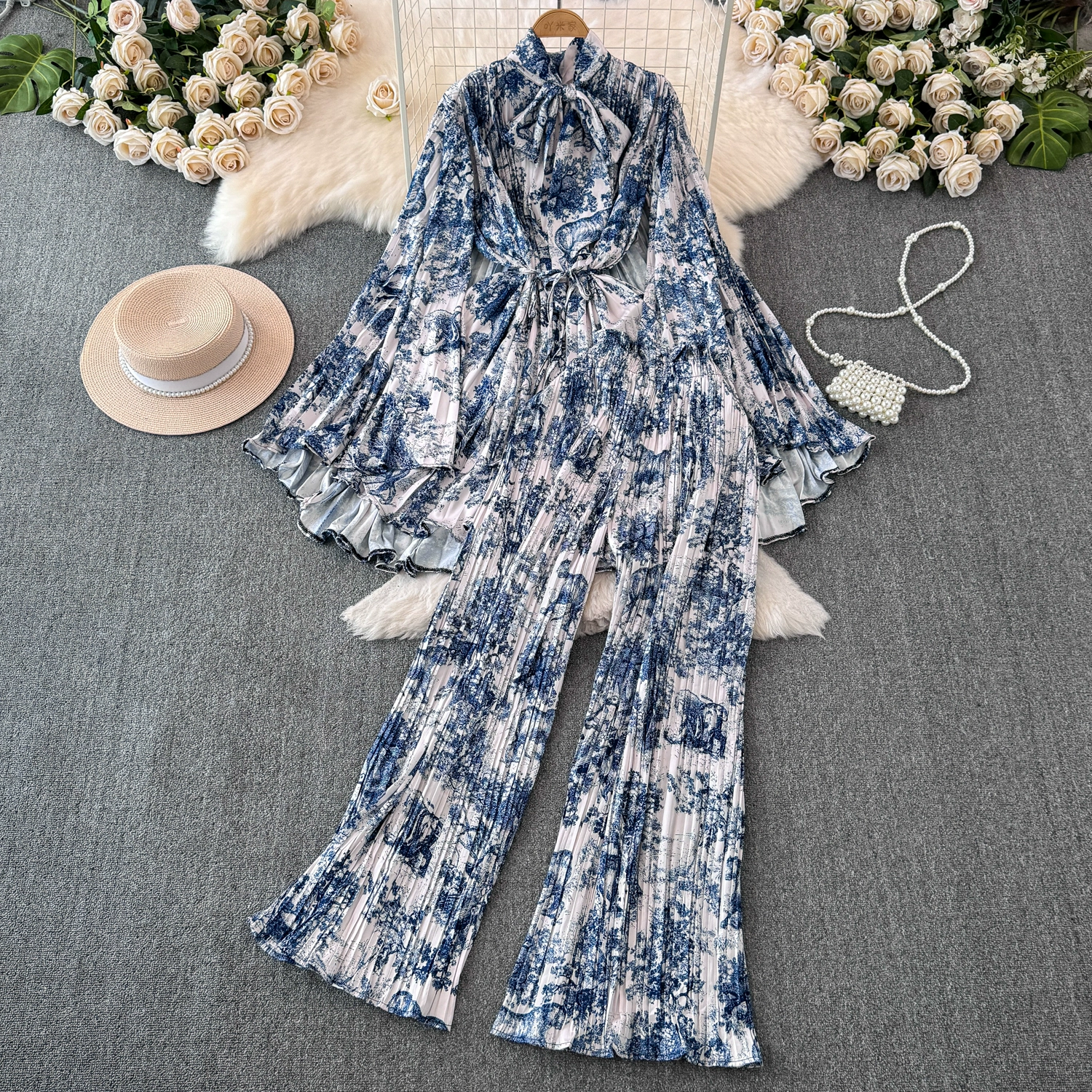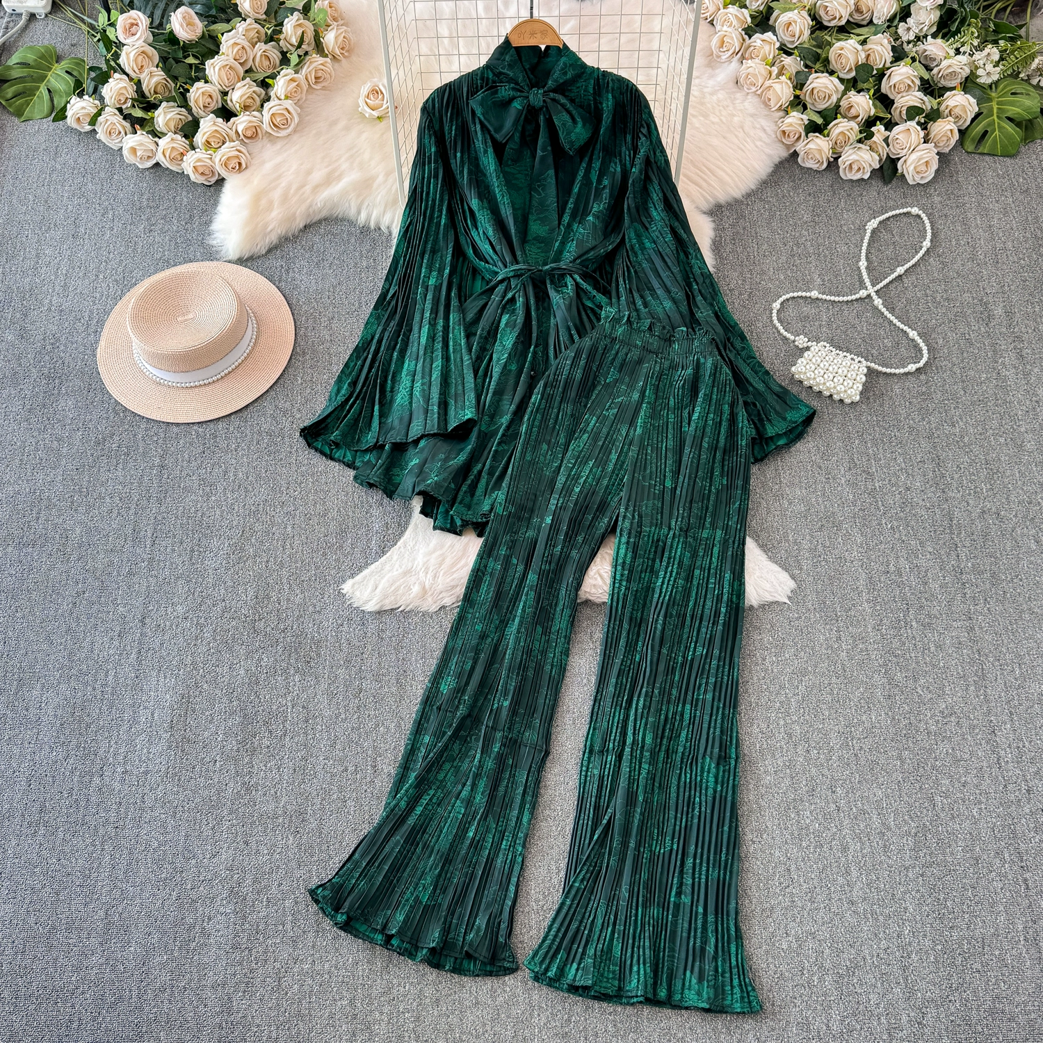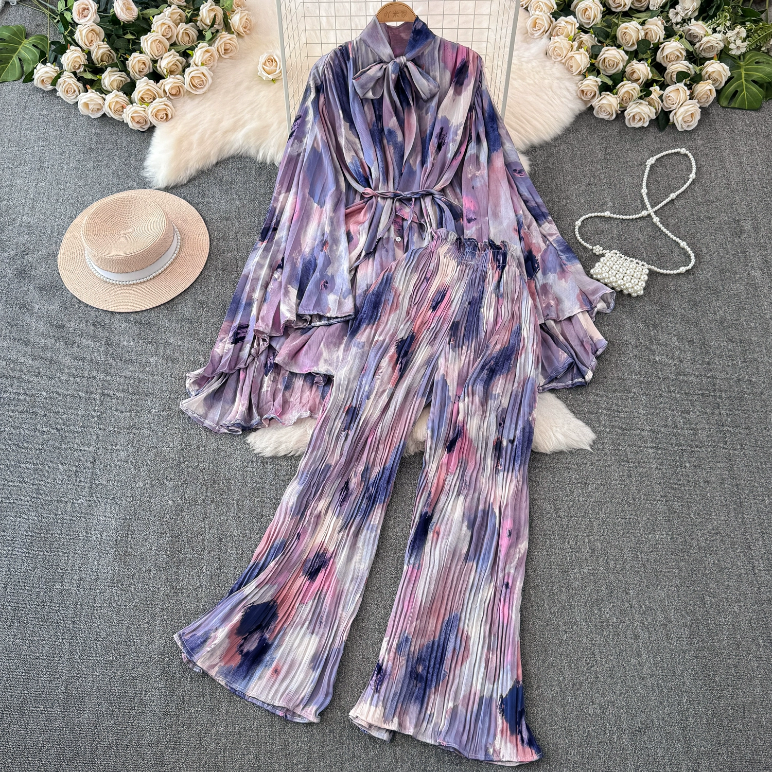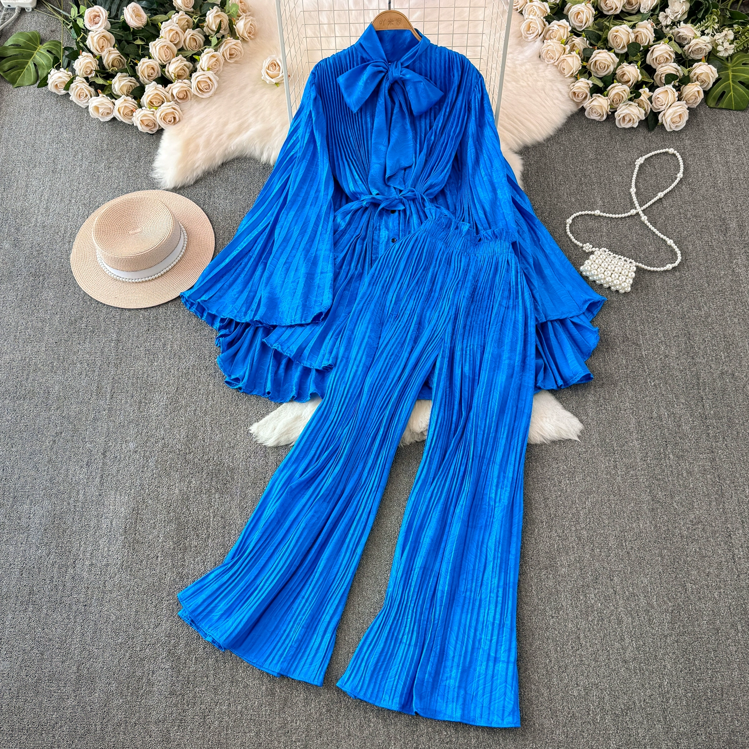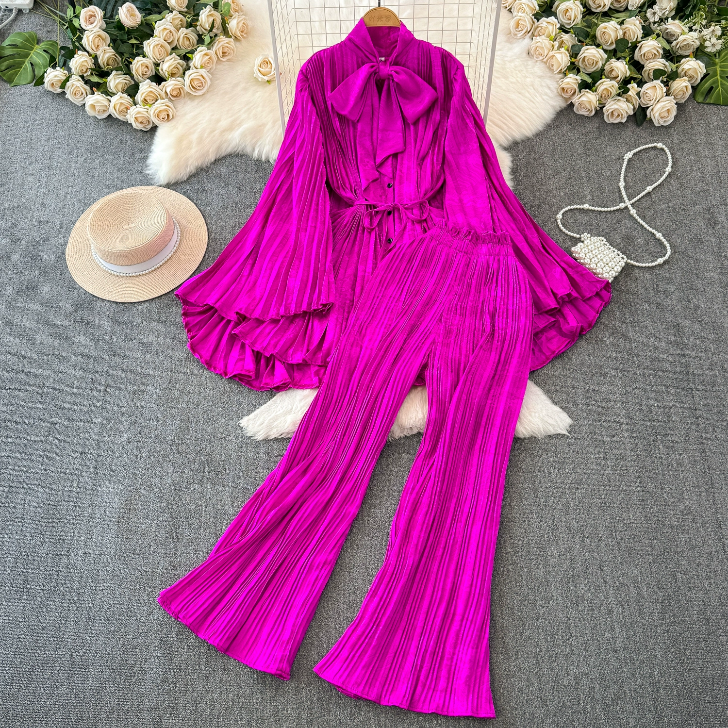 | nameOriginal | Drapey European and American style waist-cinching casual pleated two-piece set |