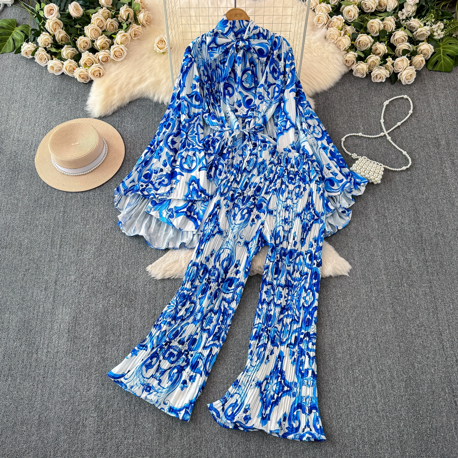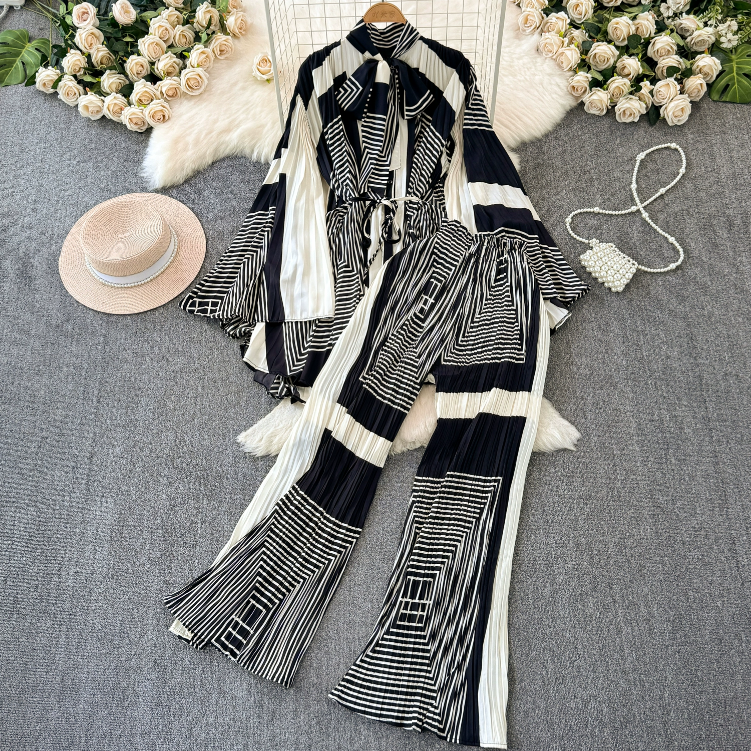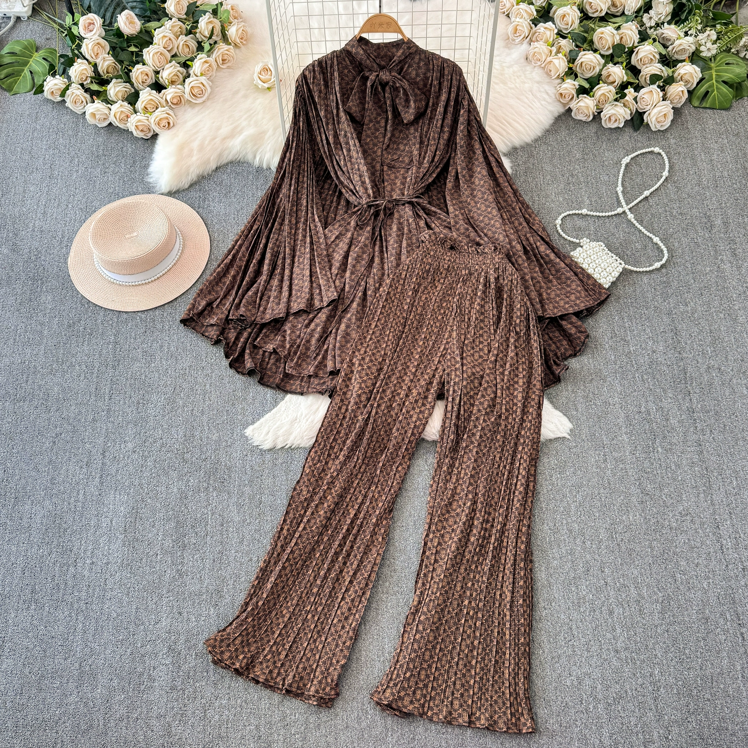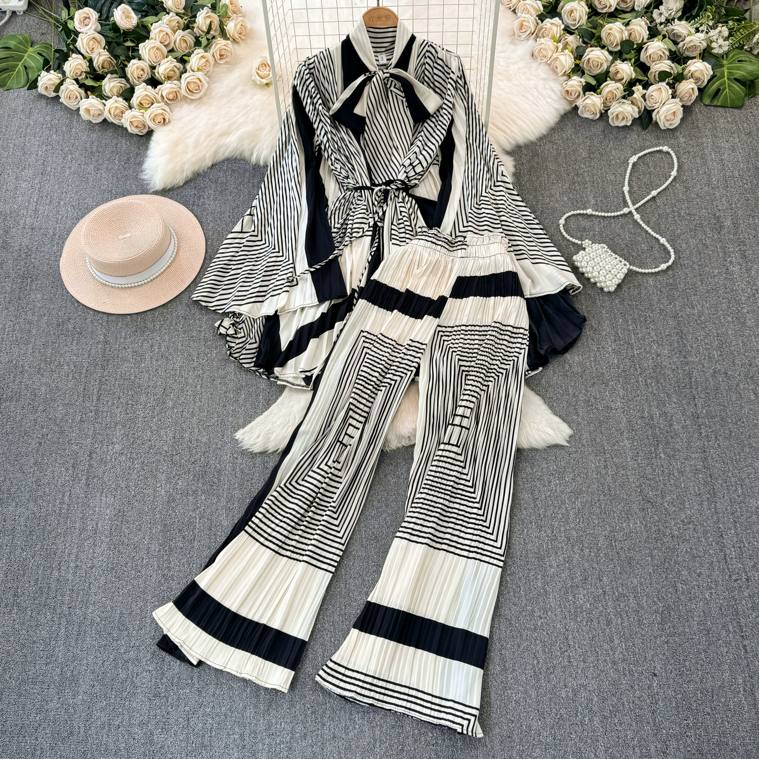 | nameOriginal | Drapey European and American style waist-cinching casual pleated two-piece set |