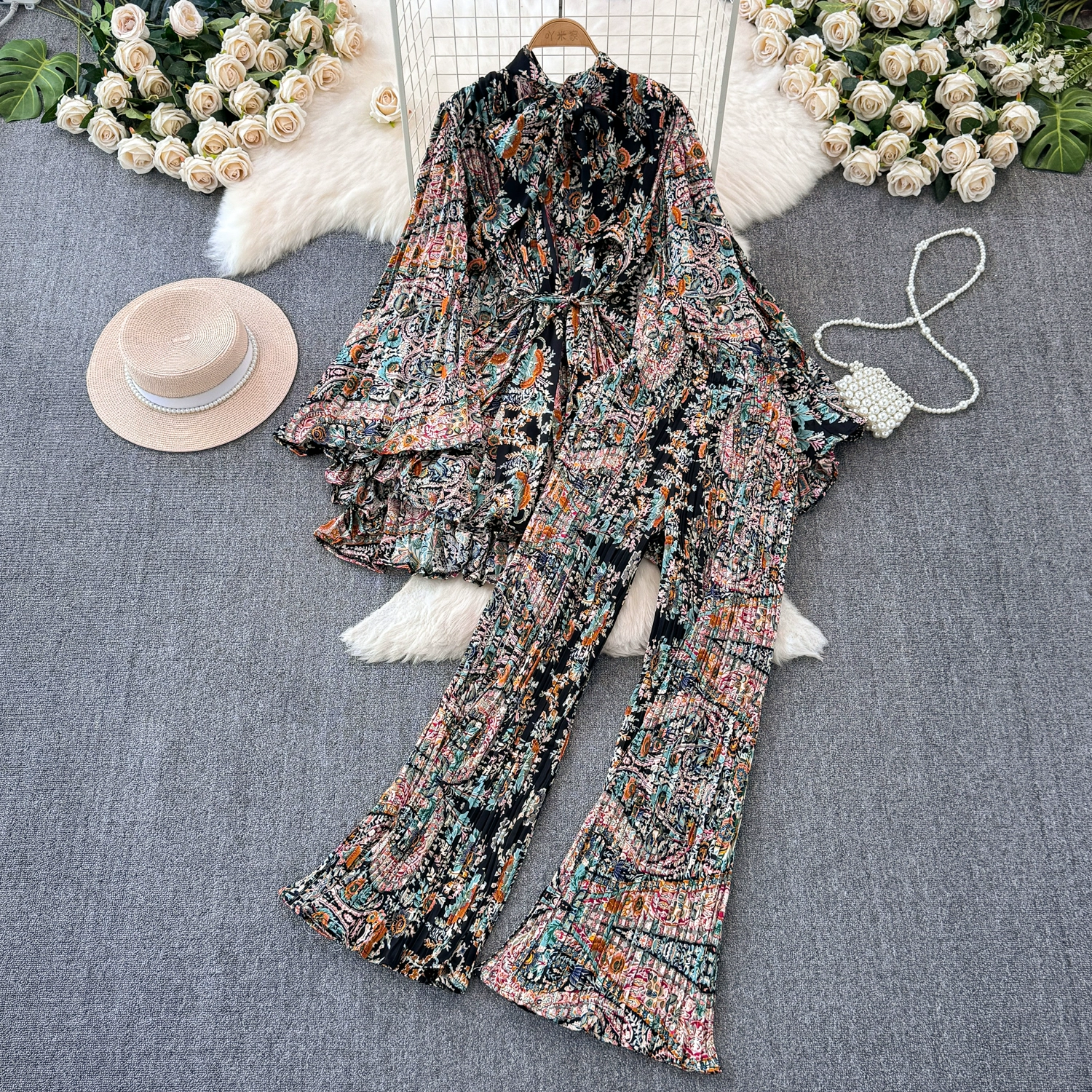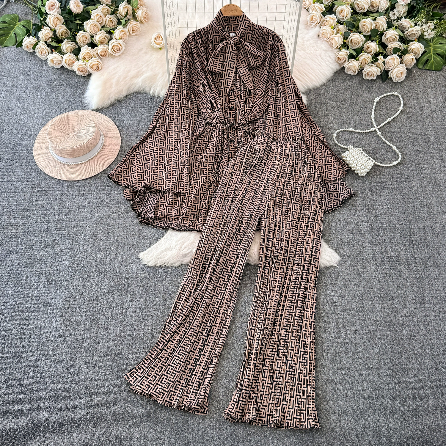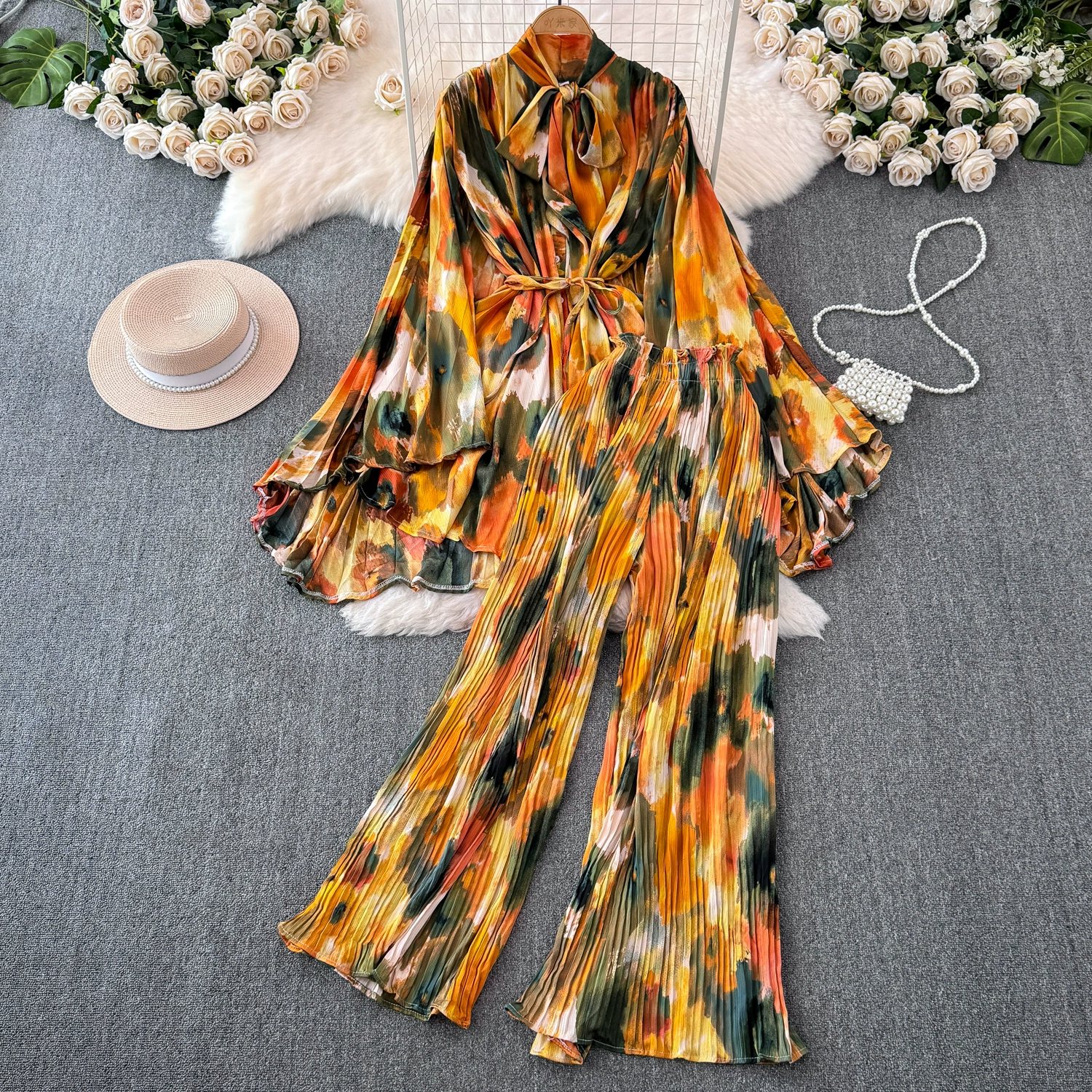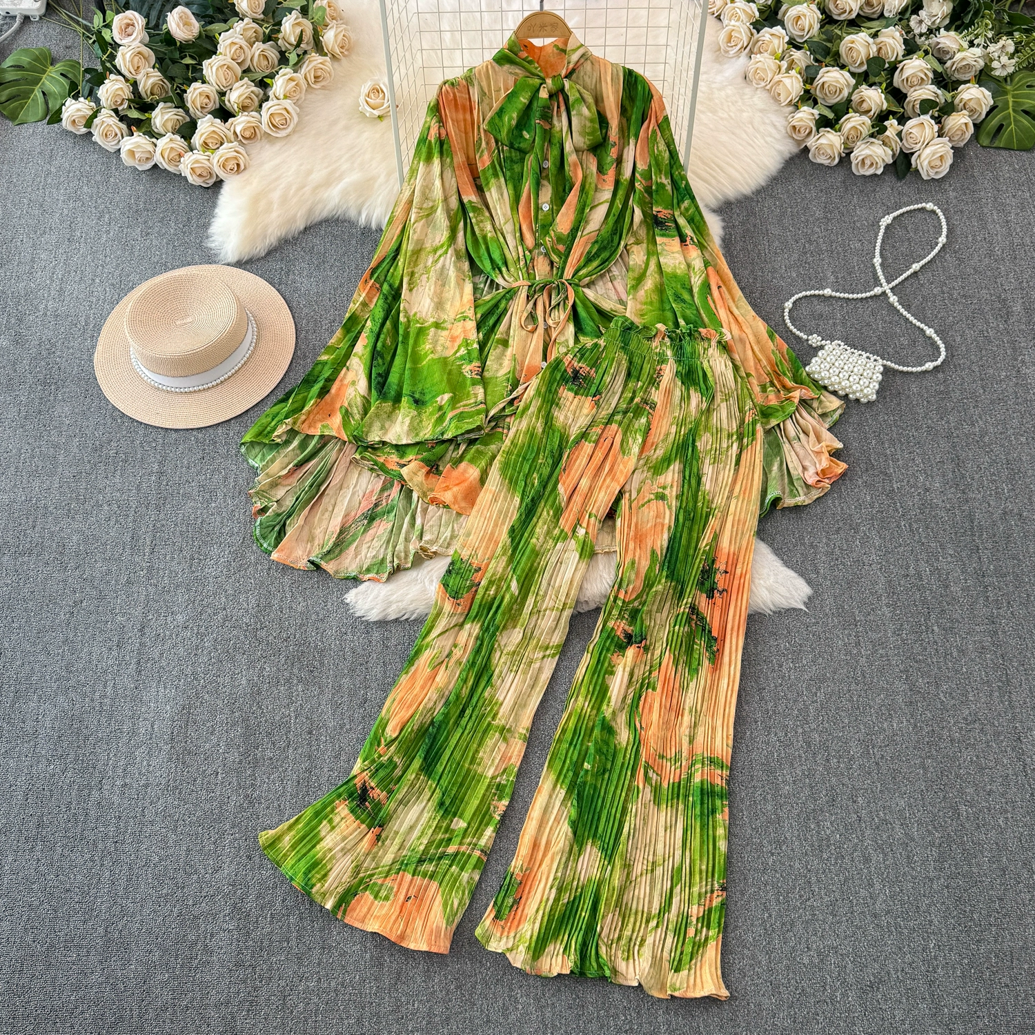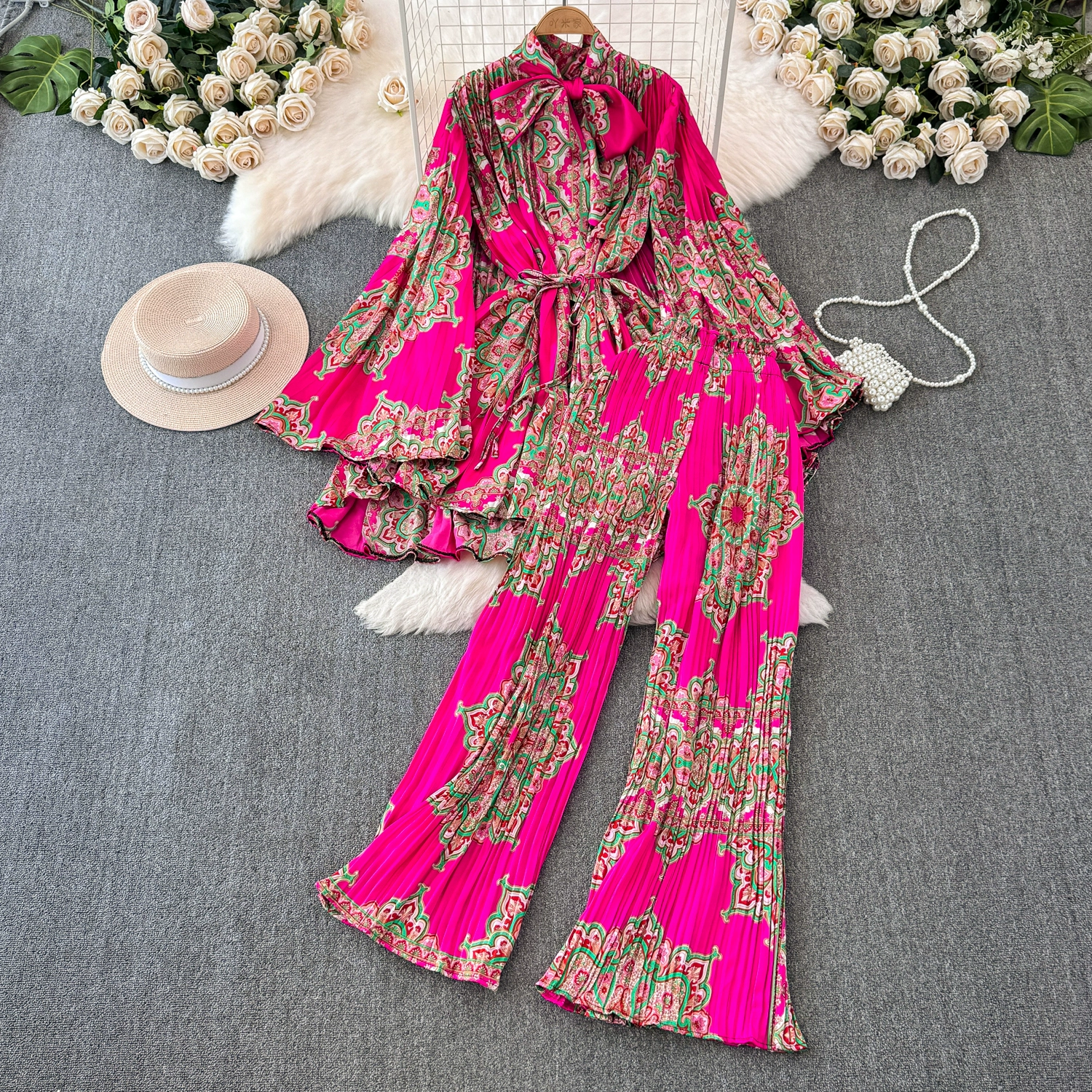 | nameOriginal | Drapey European and American style waist-cinching casual pleated two-piece set |