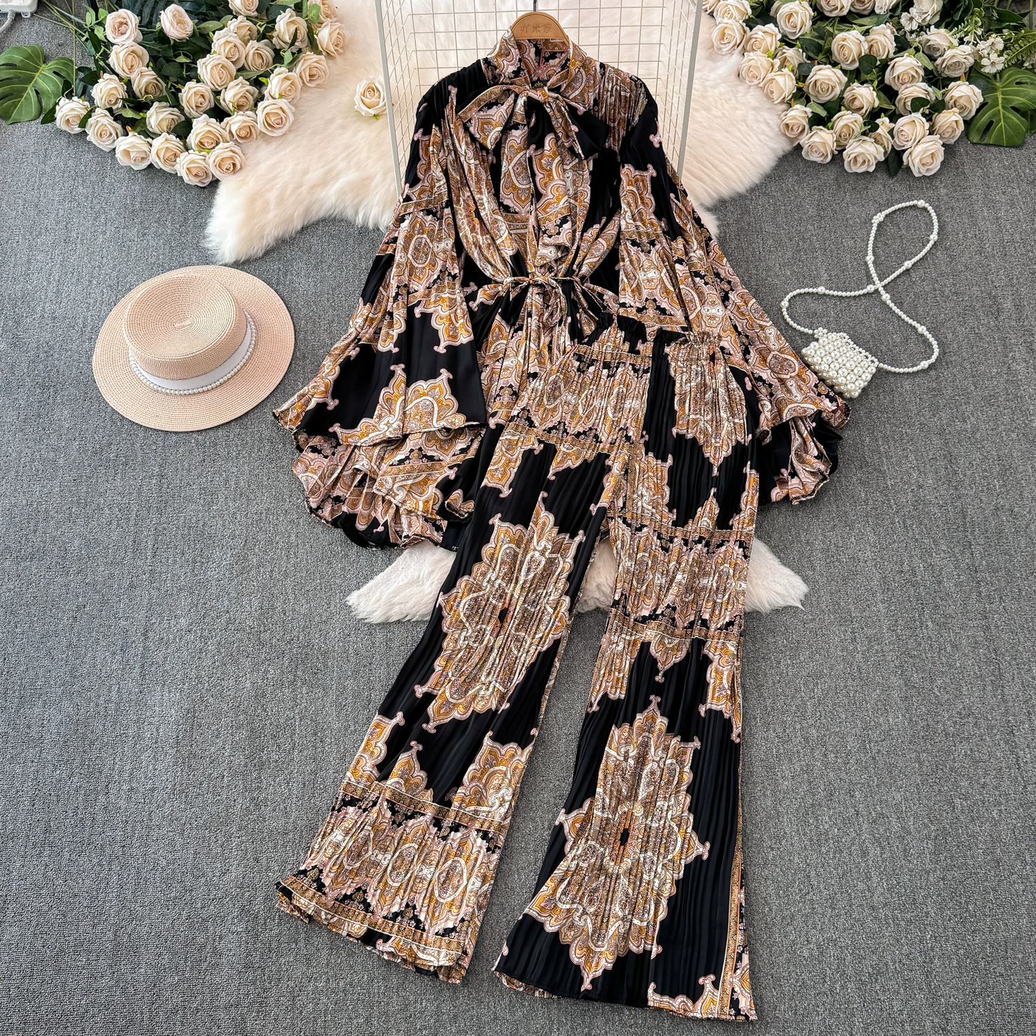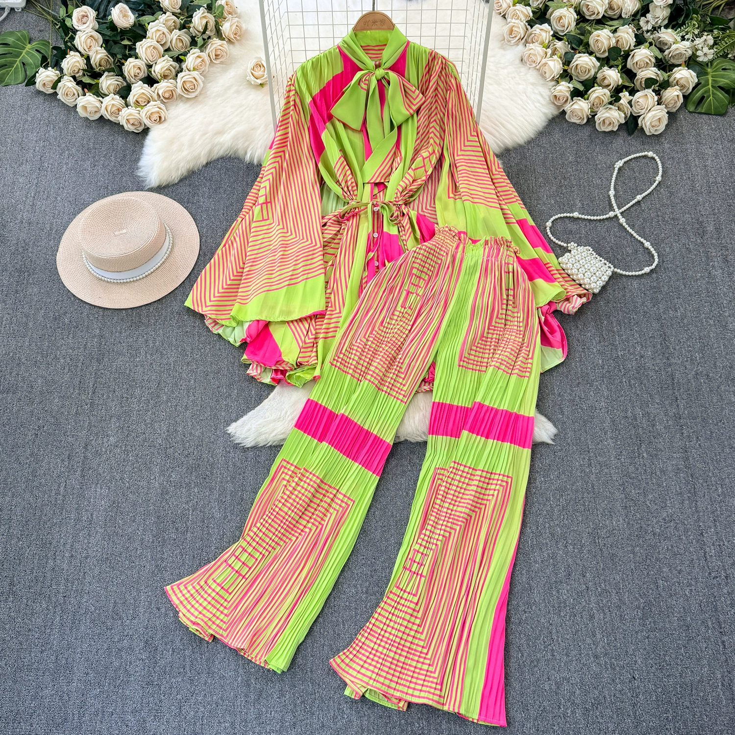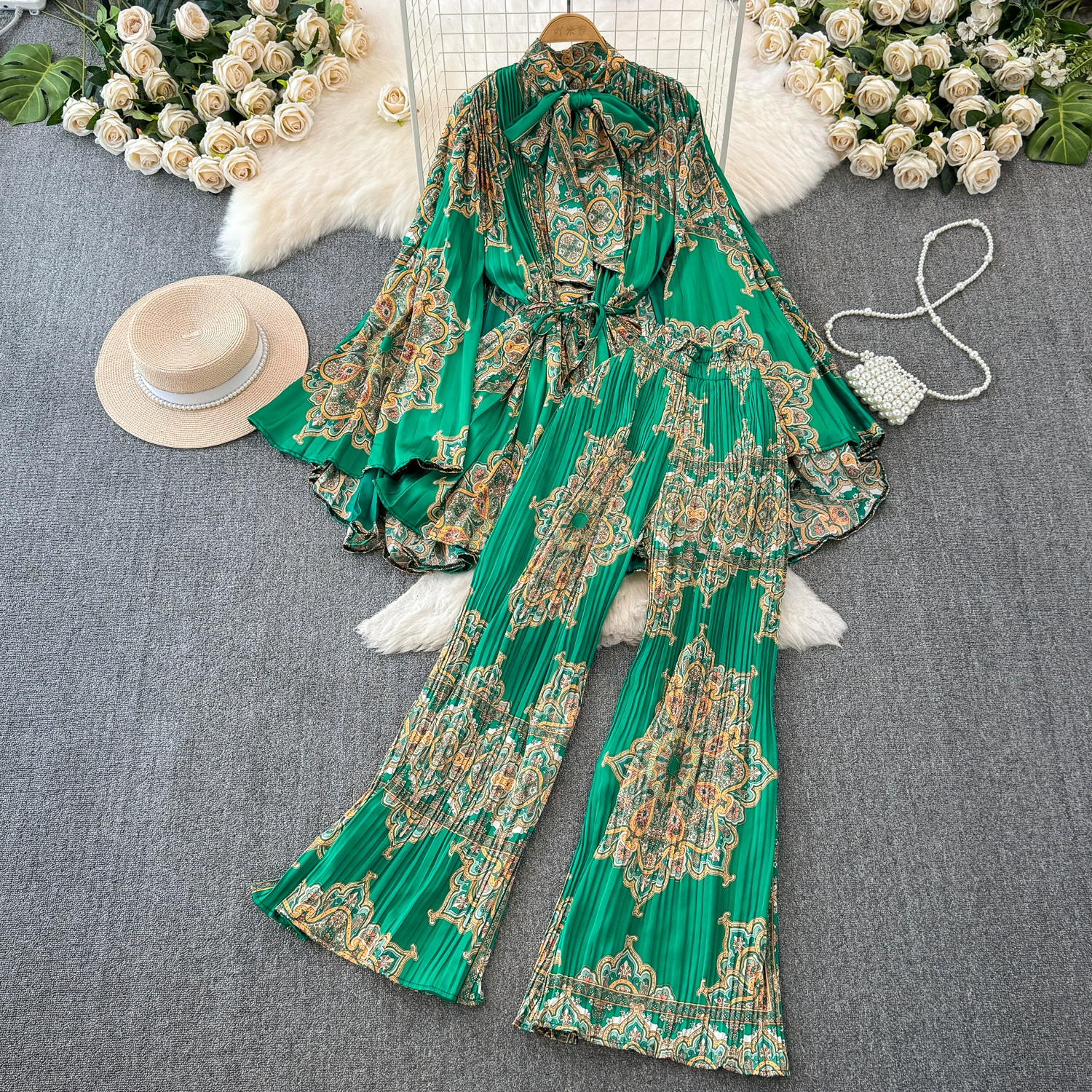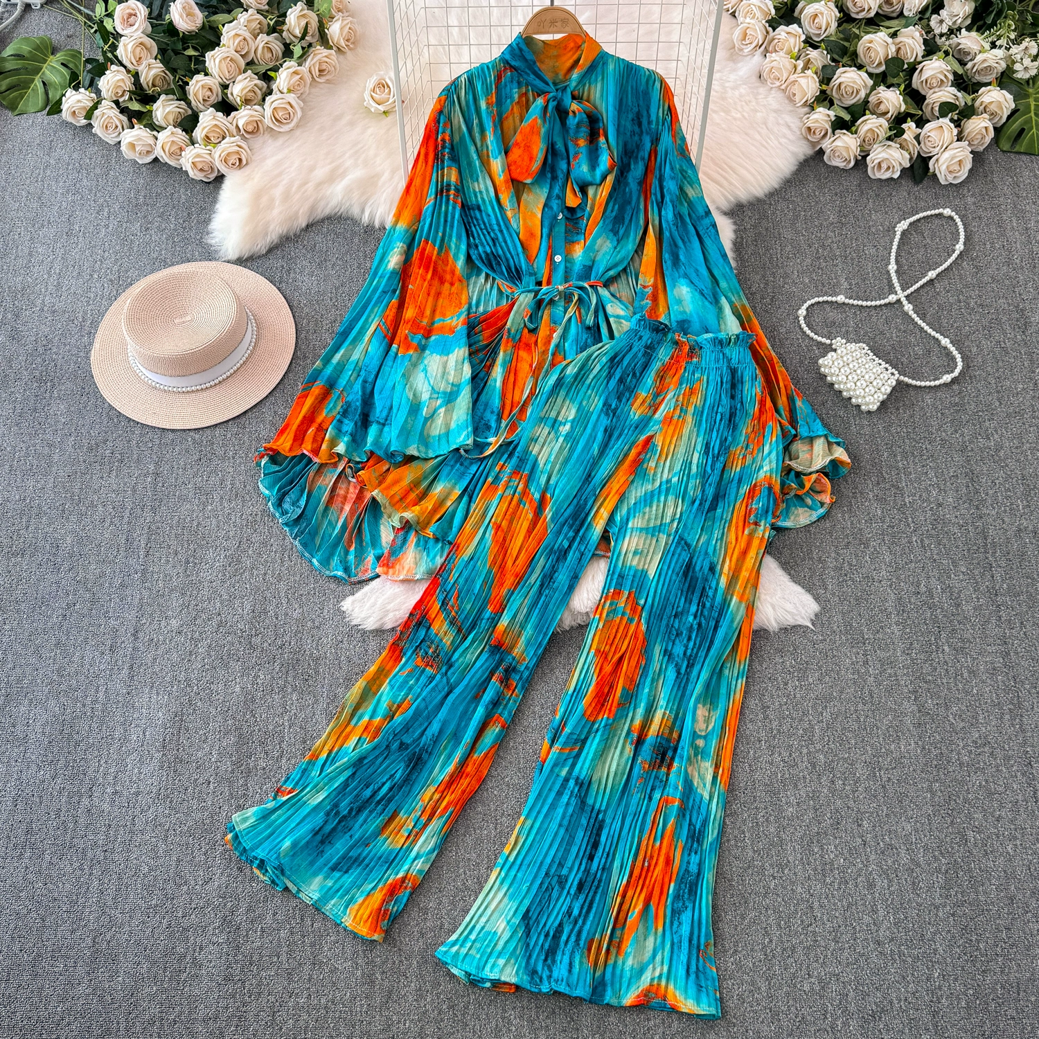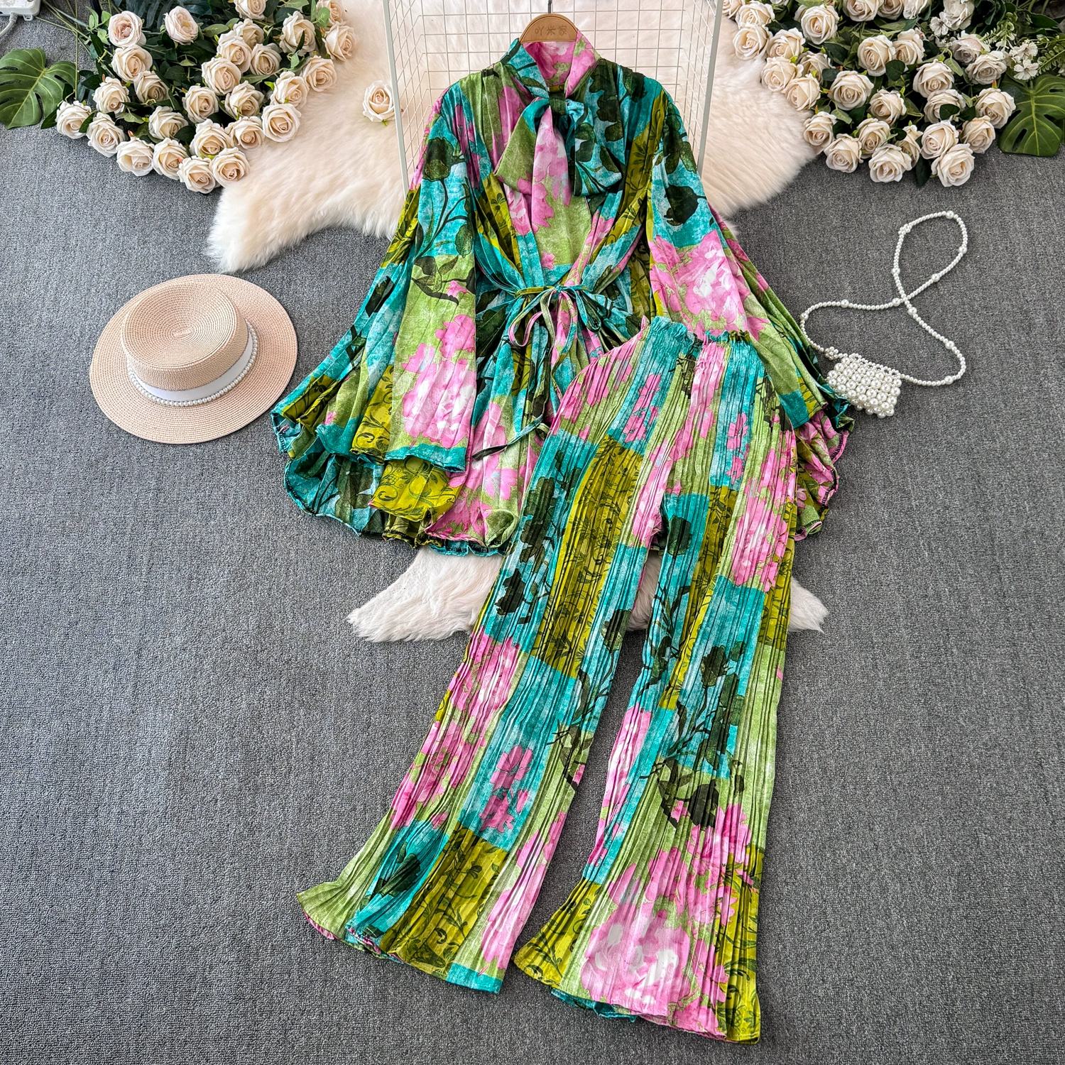 | nameOriginal | Drapey European and American style waist-cinching casual pleated two-piece set |