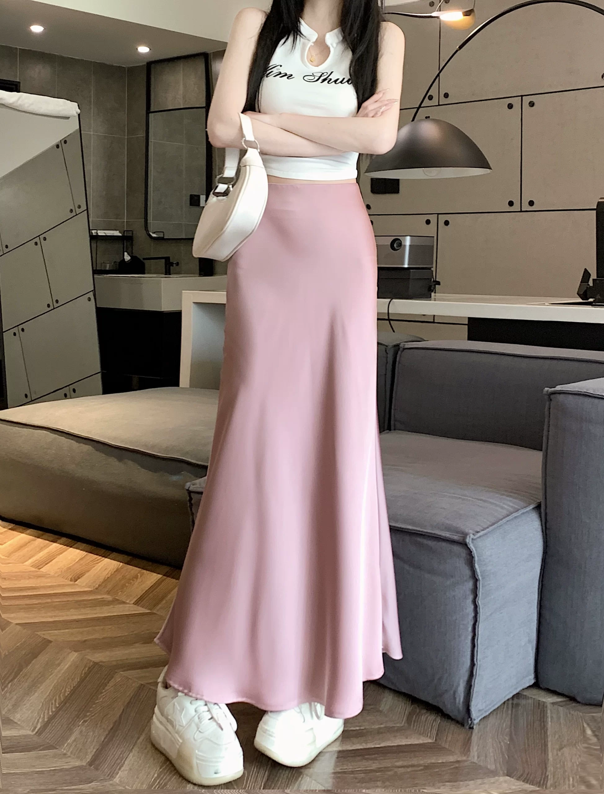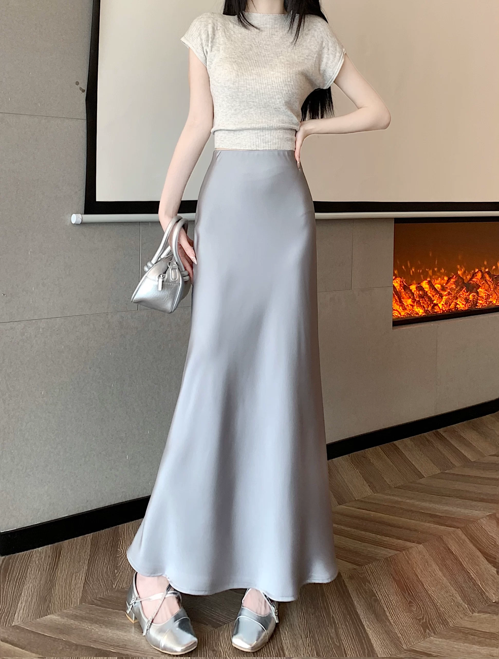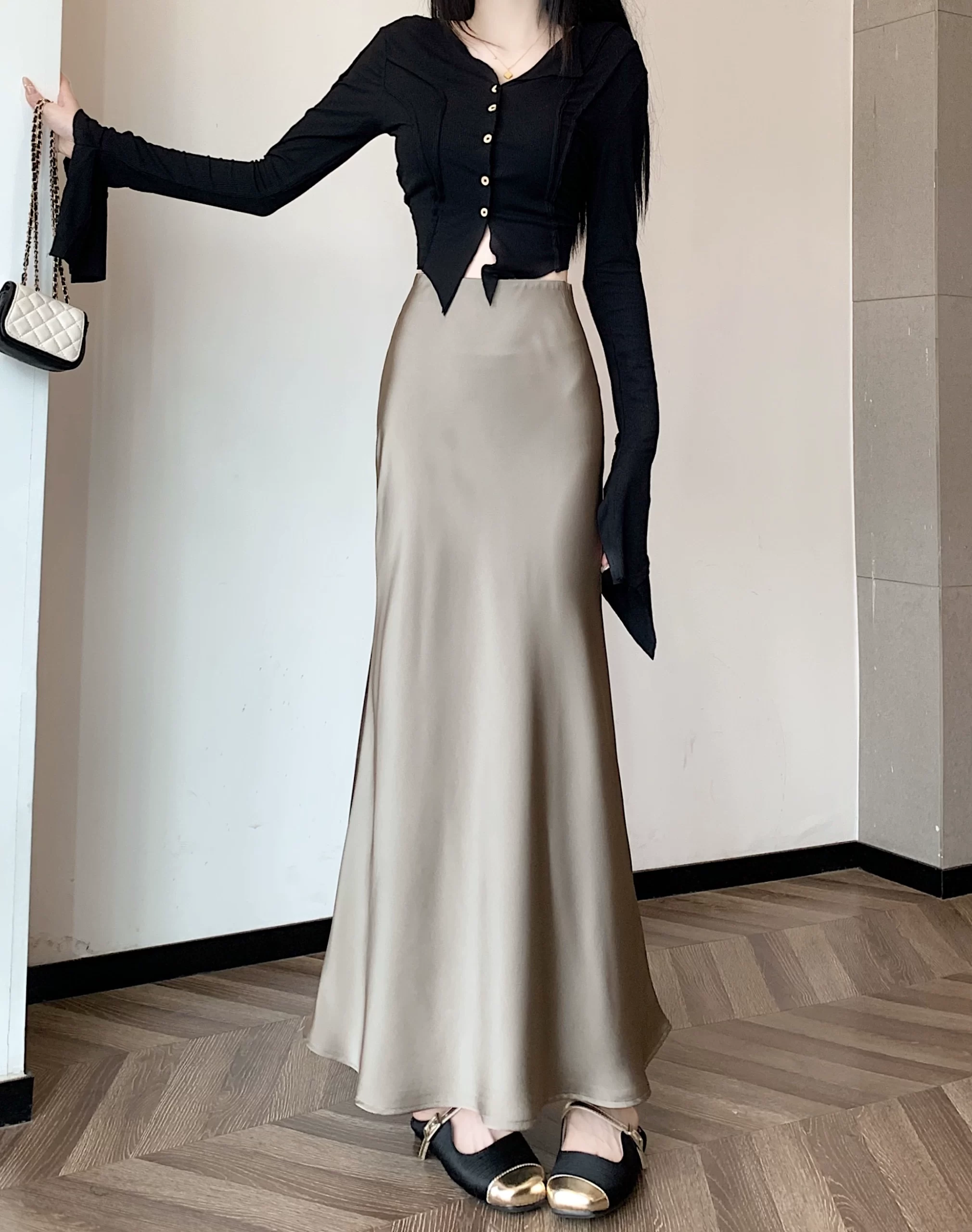| nameOriginal | Drapey mid-length hip-hugging skirt slimming and versatile satin |