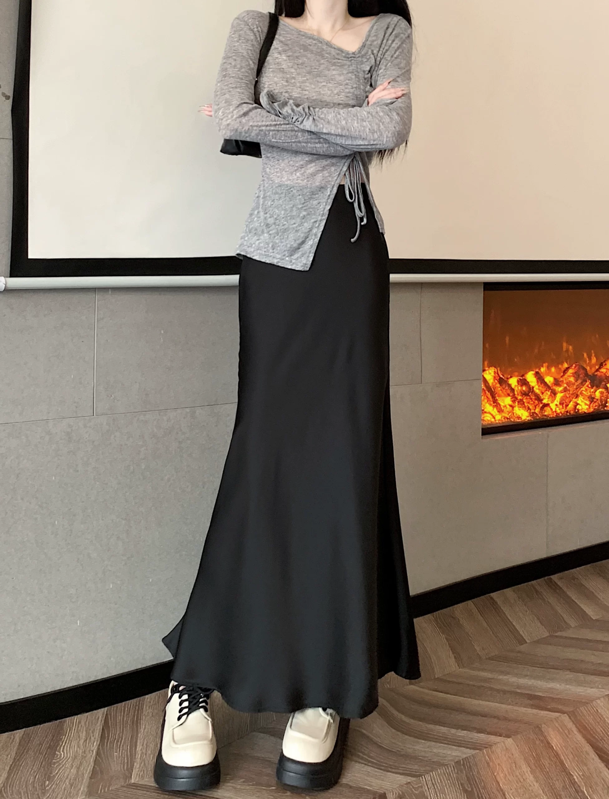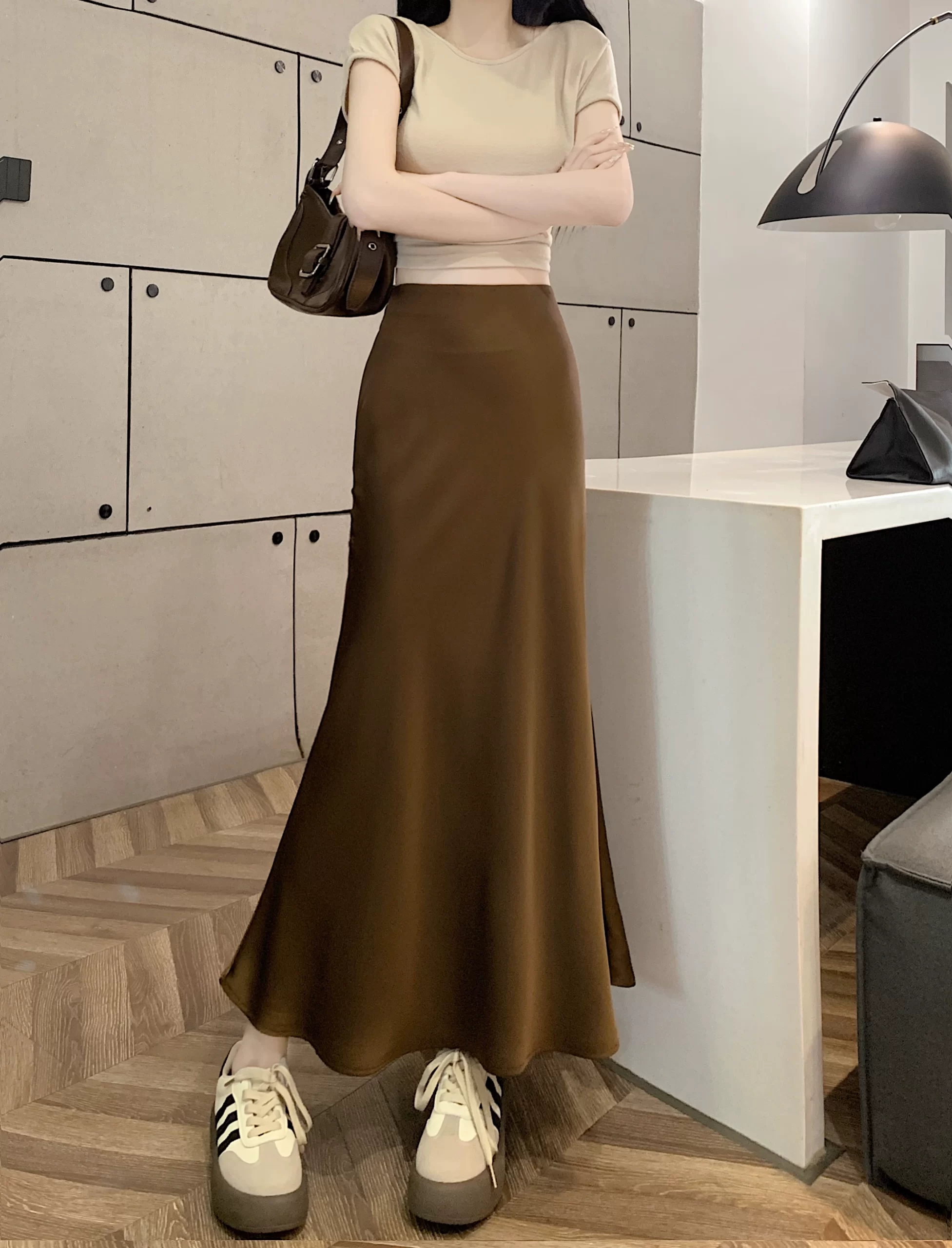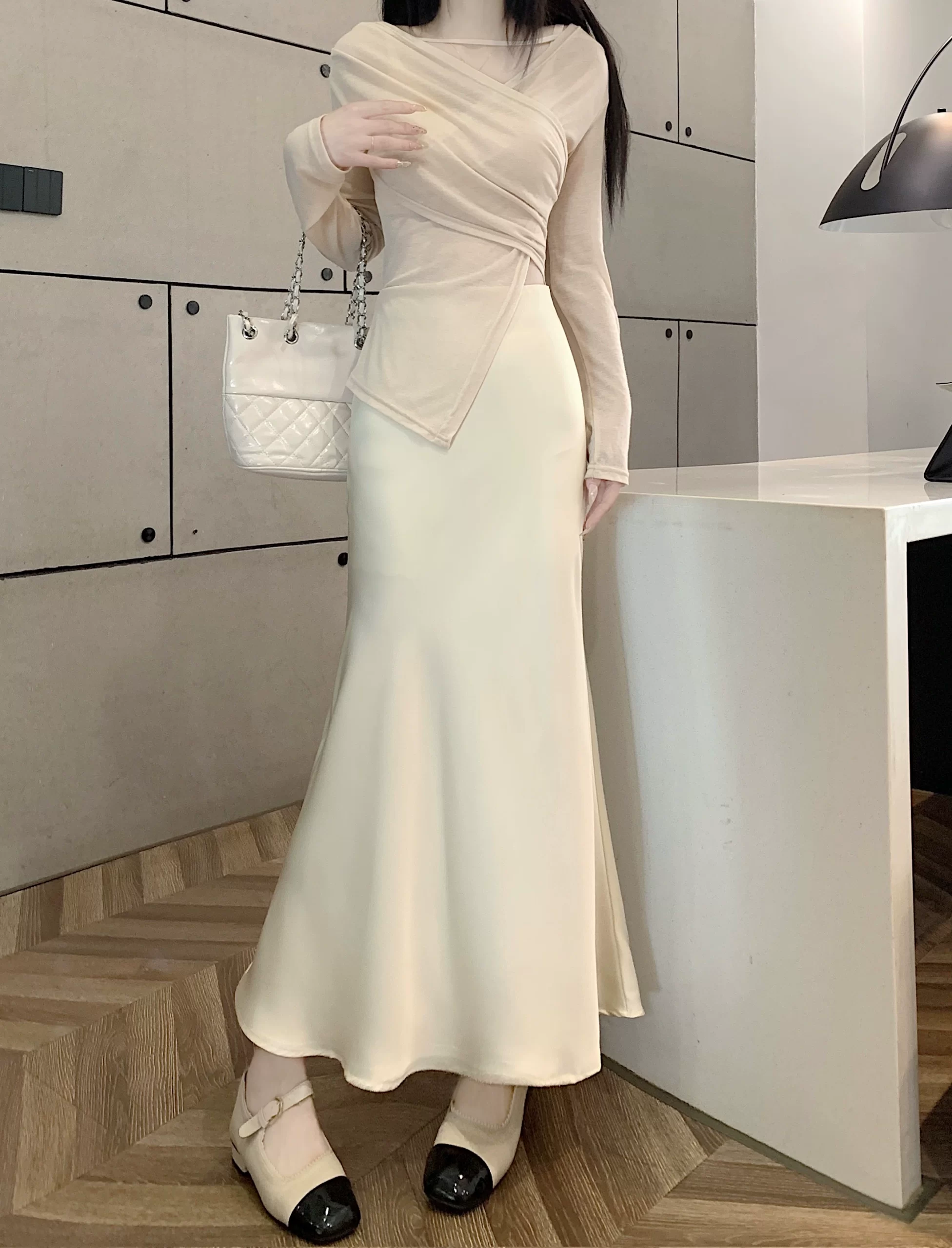 | nameOriginal | Drapey mid-length hip-hugging skirt slimming and versatile satin |