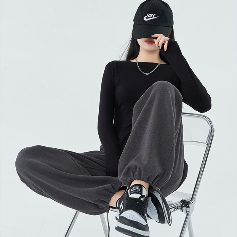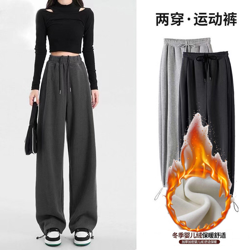| nameOriginal | Drawstring ankle-tied wide-leg pants for women Spring Autumn Winter fleece-lined thickened couple sweatpants sports loose casual straight pants |