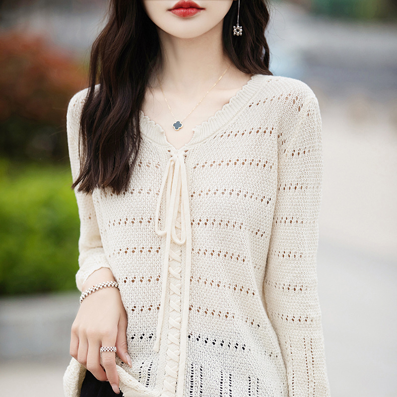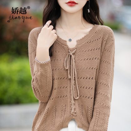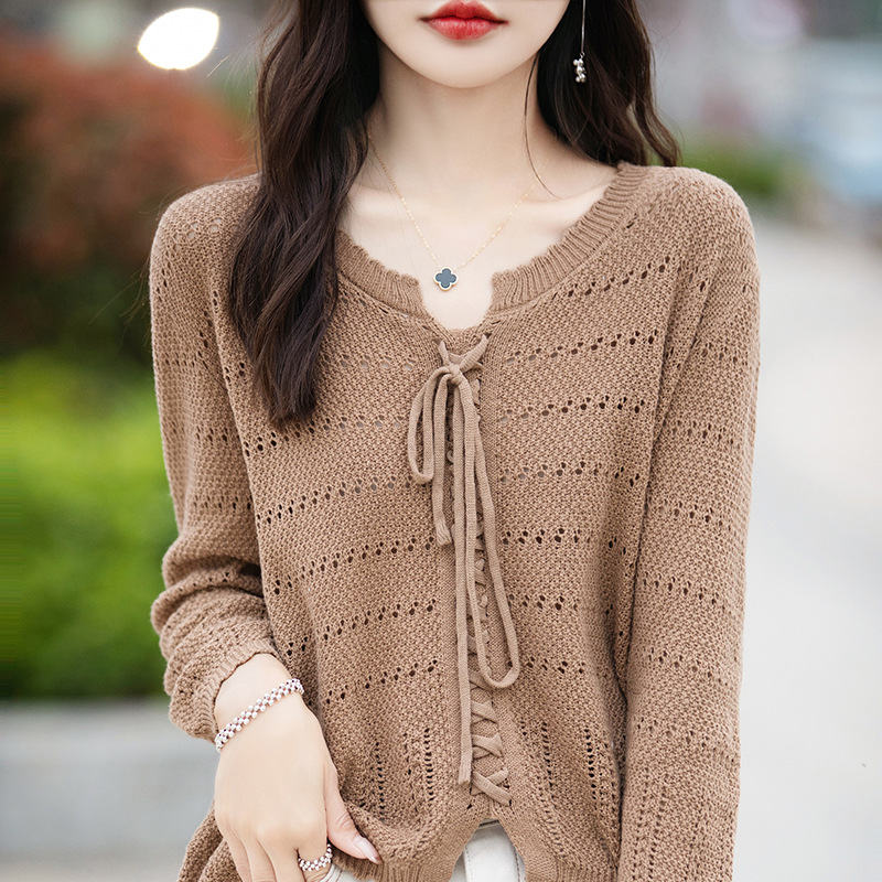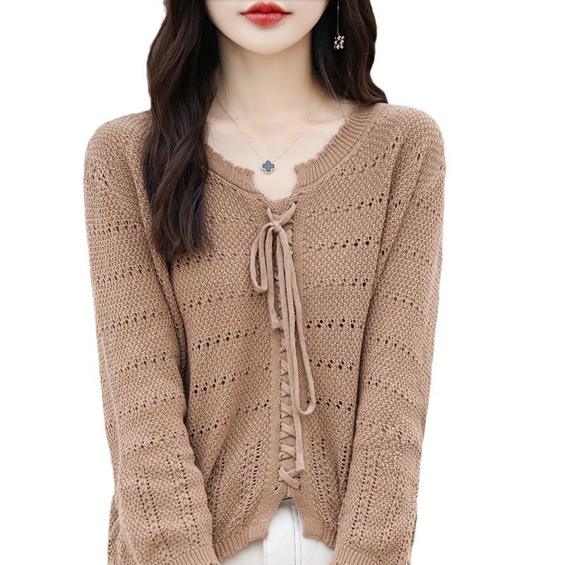 | nameOriginal | Drawstring Cotton V-neck Sweater Women's Loose 2024 Spring and Summer New Korean Style Hollow Base Sweater Thin Top |