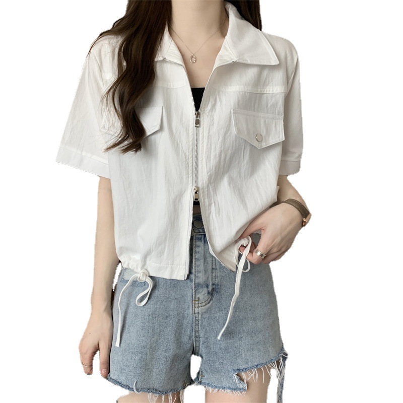 | nameOriginal | Drawstring Lace-up Zipper Shirt Women's Summer Korean-style 2024 New Tooling Design Sense Short Loose Short-sleeved Top |
