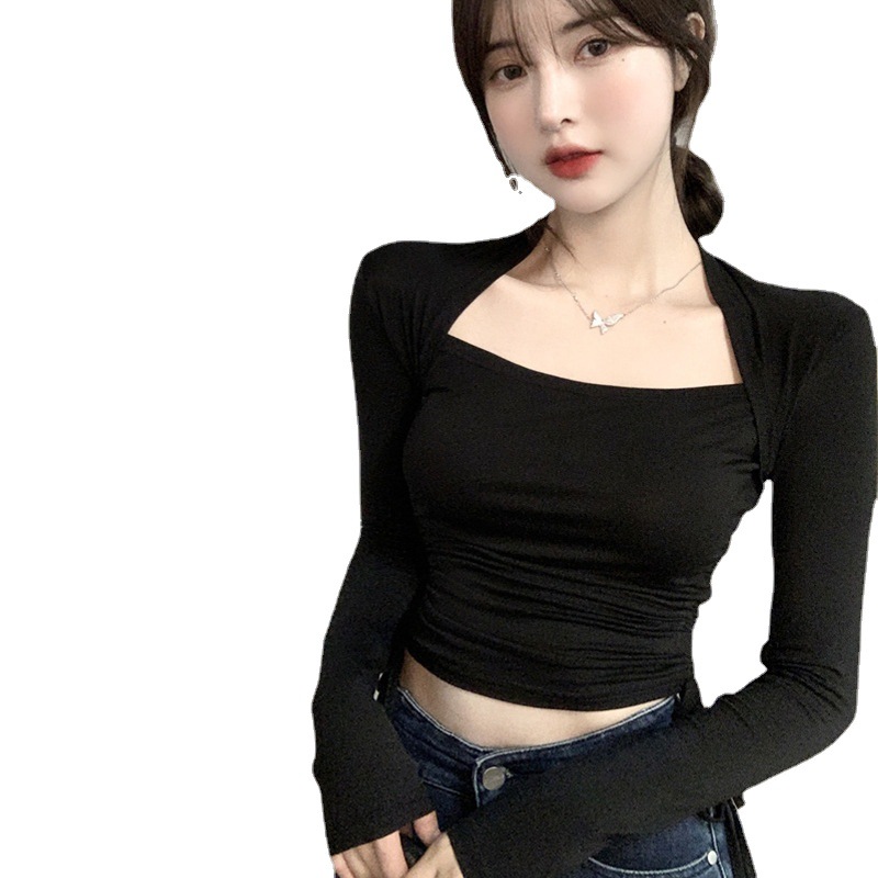 | nameOriginal | Drawstring Long-sleeved Women's Autumn and Winter 2022 New Slim-fit Irregular Casual Top Girls' Hot Girl Short Base Shirt |