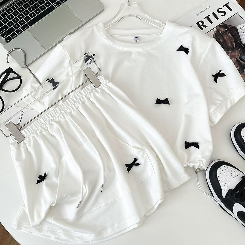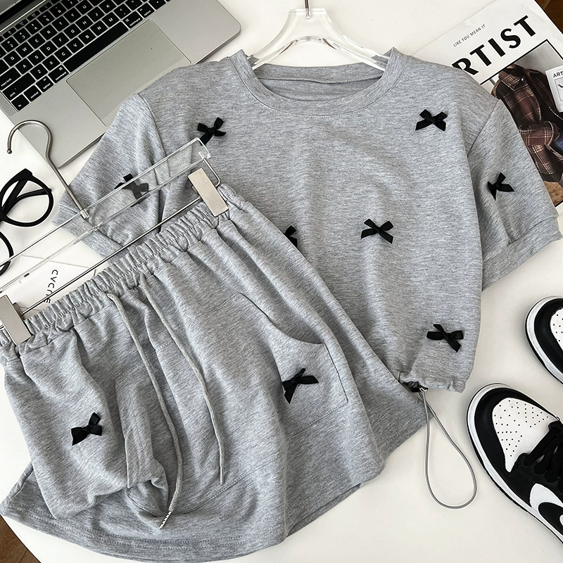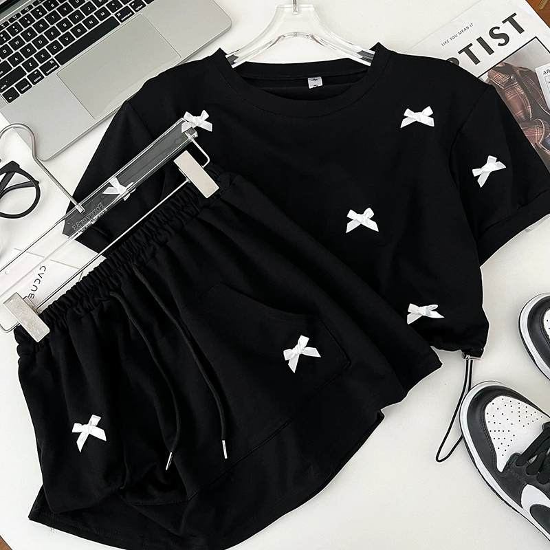 | nameOriginal | Drawstring short-sleeved T-shirt hip skirt two-piece set with bow |