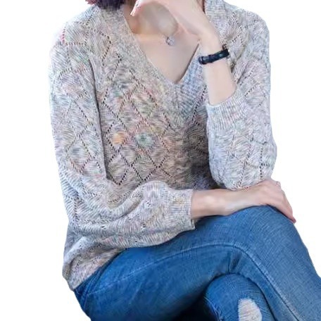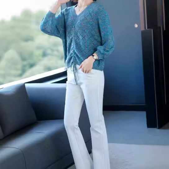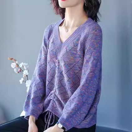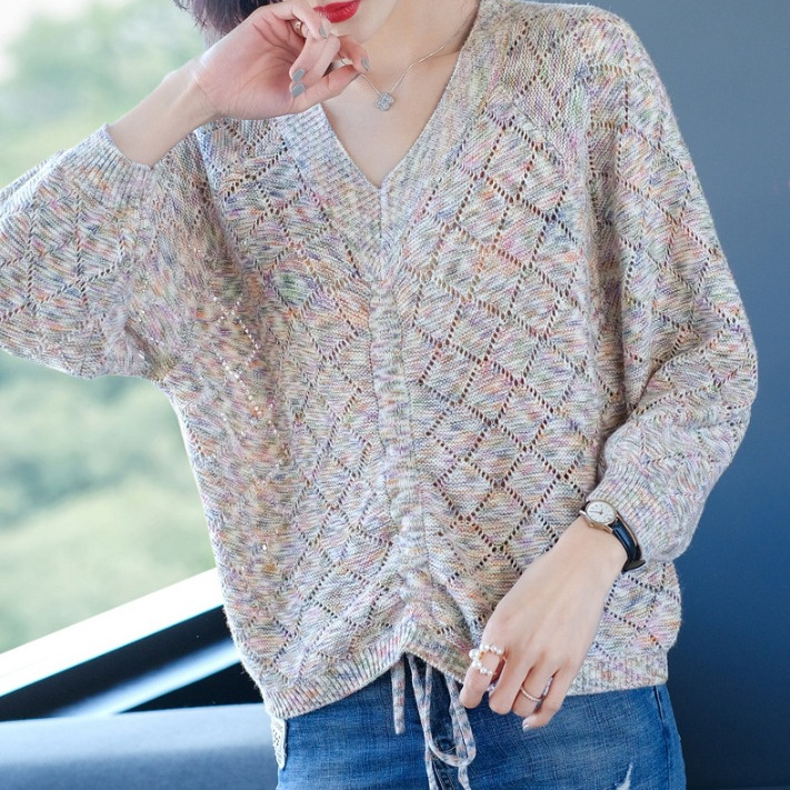 | nameOriginal | Drawstring Top Thin Base Shirt Loose Western Style Knitted Sweater Chicken Heart V-Neck New Women's Clothing in Spring 2024 |