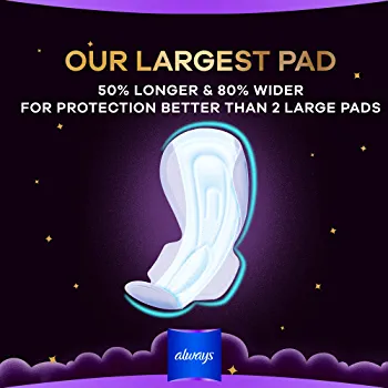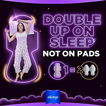 Introducing Always DreamZzz Night pads, the perfect solution for a peaceful night’s sleep. Our largest pad offers 50% more length and 80% more width, providing superior coverage and protection throughout the night. The flexible wings ensure a secure fit, while the shift-resistant double wings keep you protected no matter how much you move in your sleep. The cottony soft topsheet provides comfortable protection, and the 60% wider back offers additional coverage. Choose the Night Long Size for 360° coverage and zero sleep interruptions. With Always DreamZzz Night pads, you can sleep soundly and dream big!