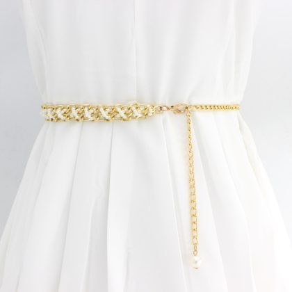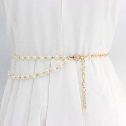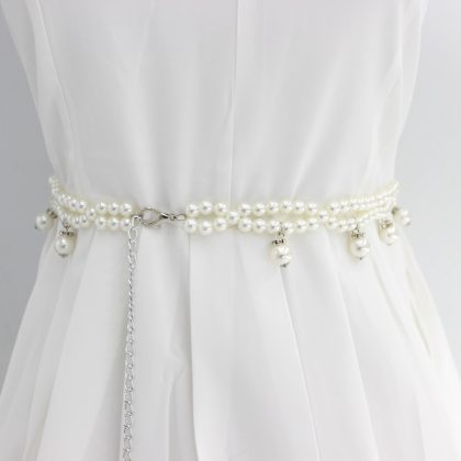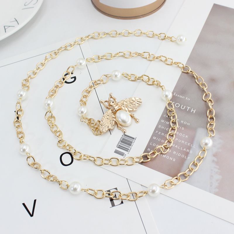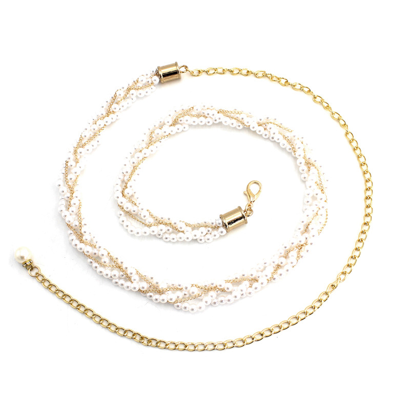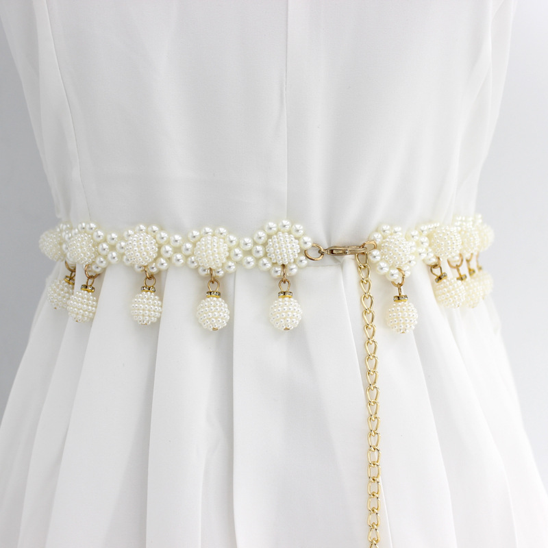 | nameOriginal | Dress beaded hook women's waist chain Korean sweet fashion Pearl decorative metal belt nine a generation of hair |