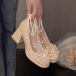 | nameOriginal | Dress Bow Thick Heel High Heels Women's Gentle Fairy Style Adult Wedding Shoes Bridesmaid Shoes Mary Jane Women's Shoes |