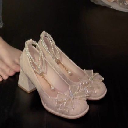 | nameOriginal | Dress Bow Thick Heel High Heels Women's Gentle Fairy Style Adult Wedding Shoes Bridesmaid Shoes Mary Jane Women's Shoes |