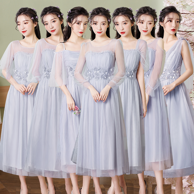 | nameOriginal | Dress can be worn at ordinary times sisters group bridesmaid 2024 new evening dress women's spring feeling girlfriends gray independent station |