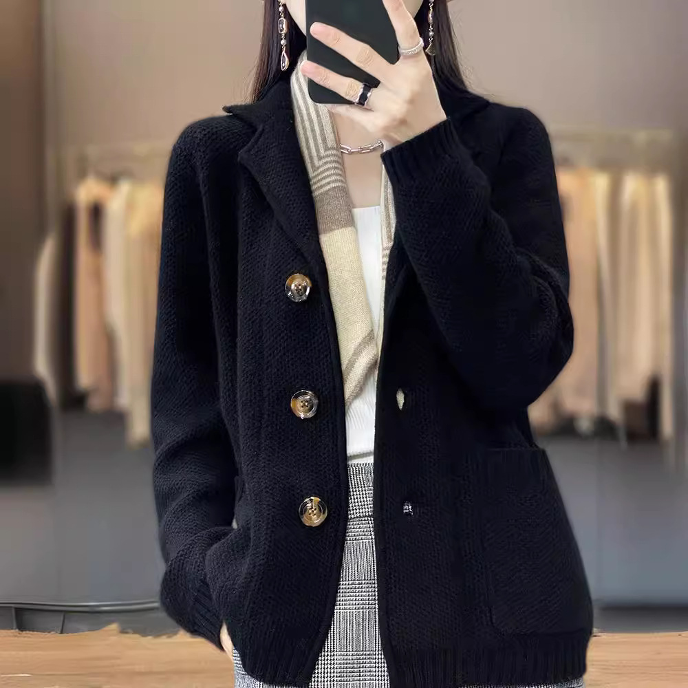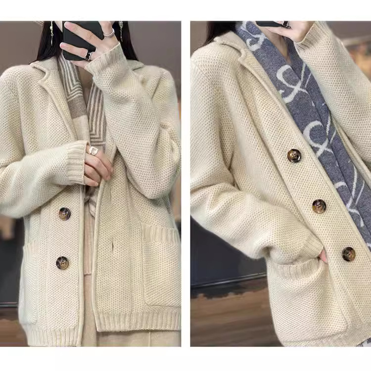 Dress Collar Cardigan Women’s Thickened Loose Lazy Style Knitted Jacket Sweater Autumn and Winter New