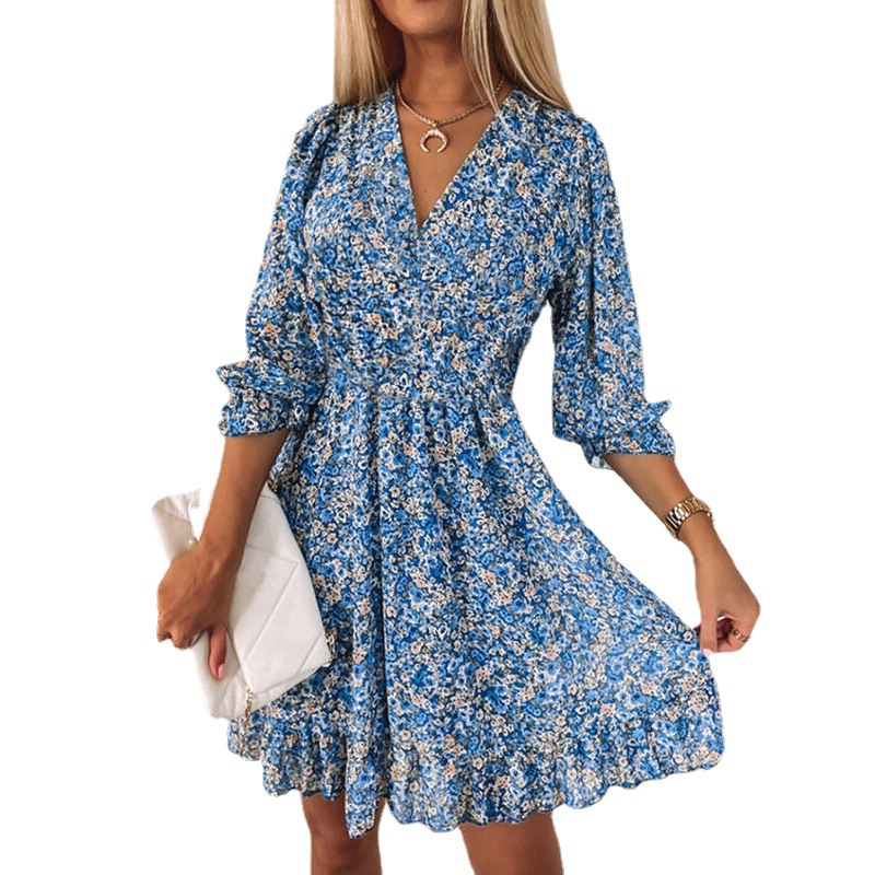 | nameOriginal | Dress Summer 2024 AliExpress New Printed Dress Loose European and American Fashion V-neck Chiffon Pleated Skirt |