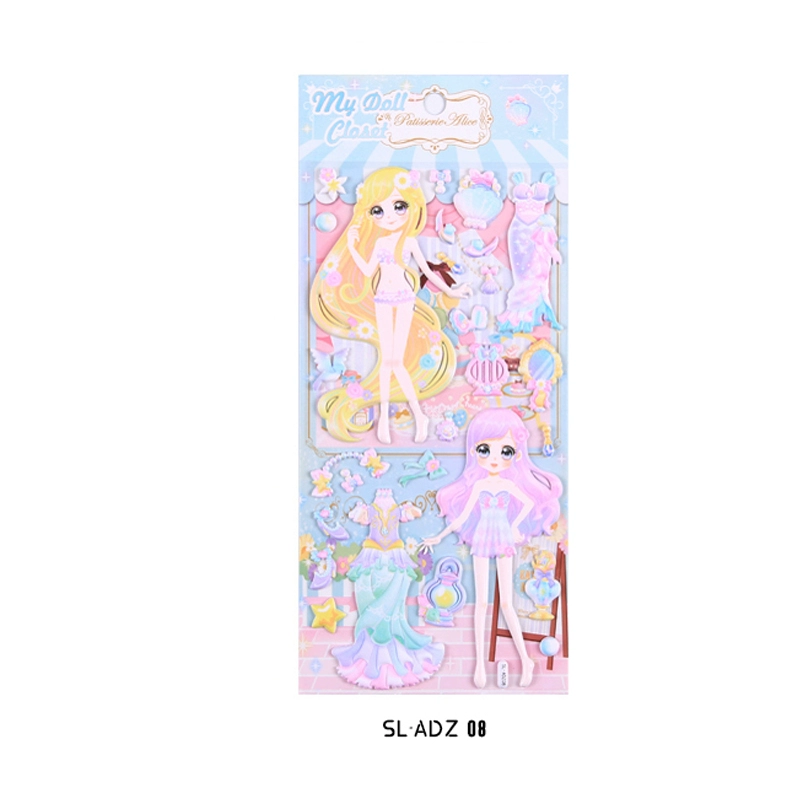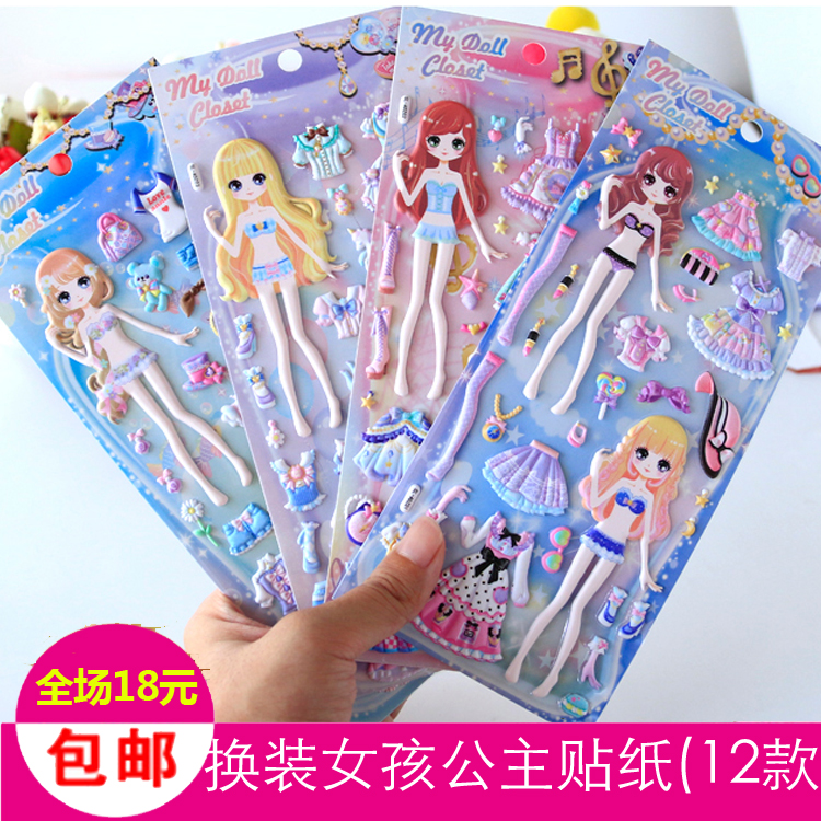 | nameOriginal | Dress Up Princess Puzzle Bubble Stickers Cartoon Children Girls Reward Three-dimensional Stickers School Prize Gifts |