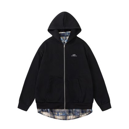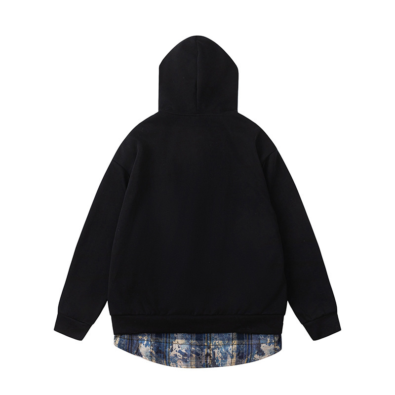 Dress Vintage 2024 spring new hooded fake two-piece sweater casual loose zipper fashion coat for men and women