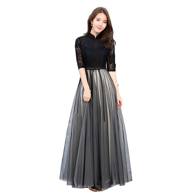 | nameOriginal | Dress Women's 2023 New Slimming Vintage Lace Mid-Sleeve Black Long Banquet Evening Dress |