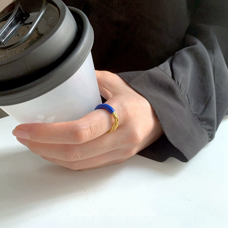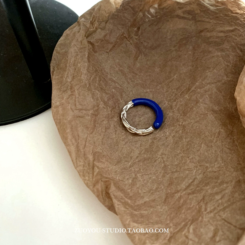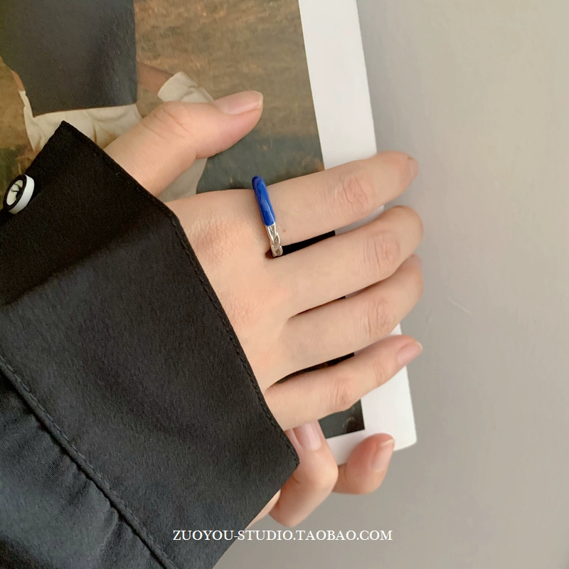 | nameOriginal | Dripping glaze blue ring for women INS trendy niche design French retro high-end stitching twist open index finger ring |