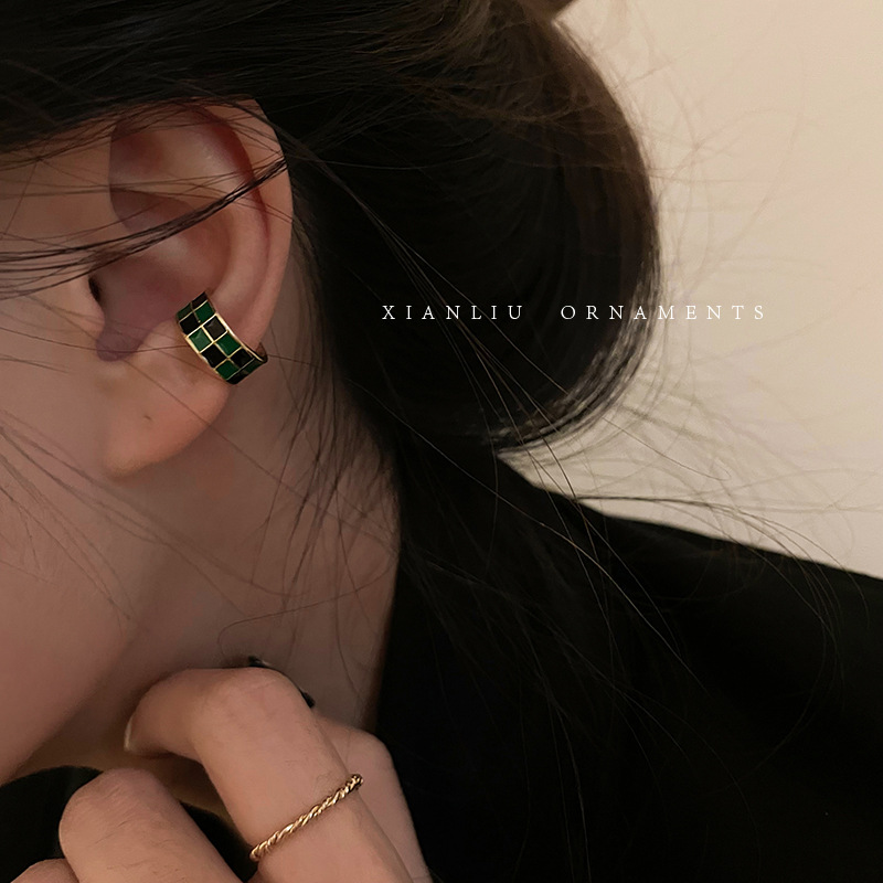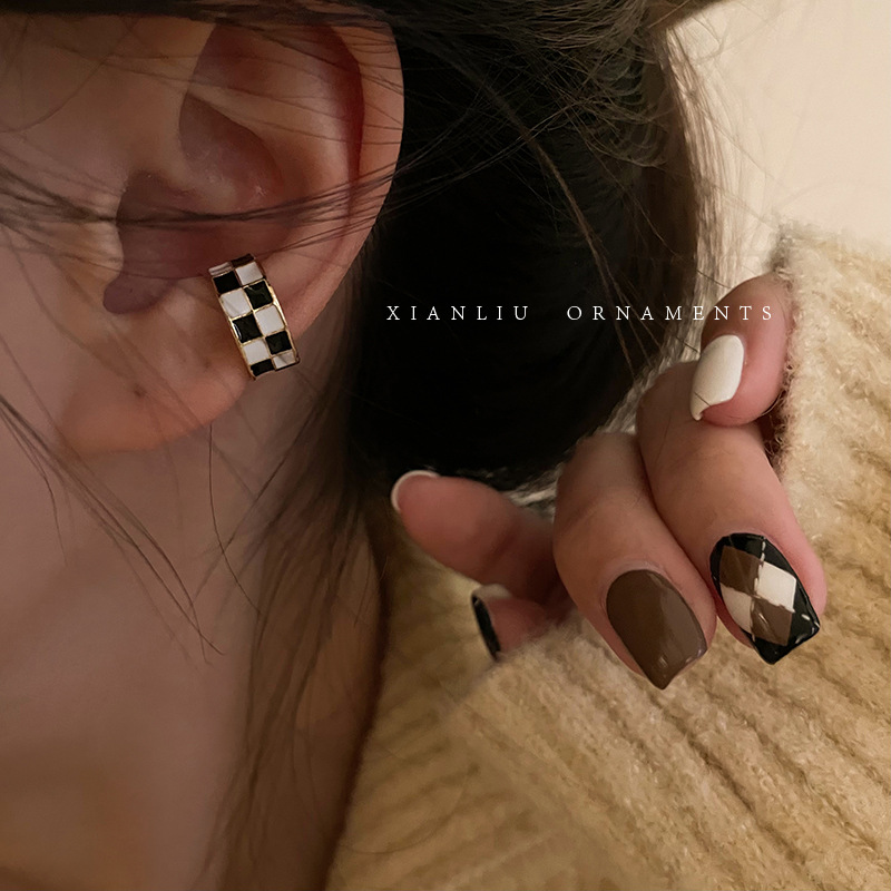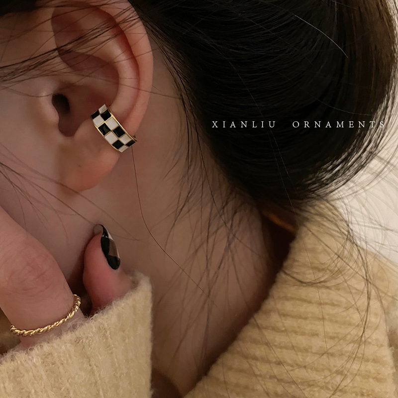 | nameOriginal | Dropping oil checkerboard ear bone clip women without ear hole high sense niche temperament ear clip ear jewelry 2022 new trend |