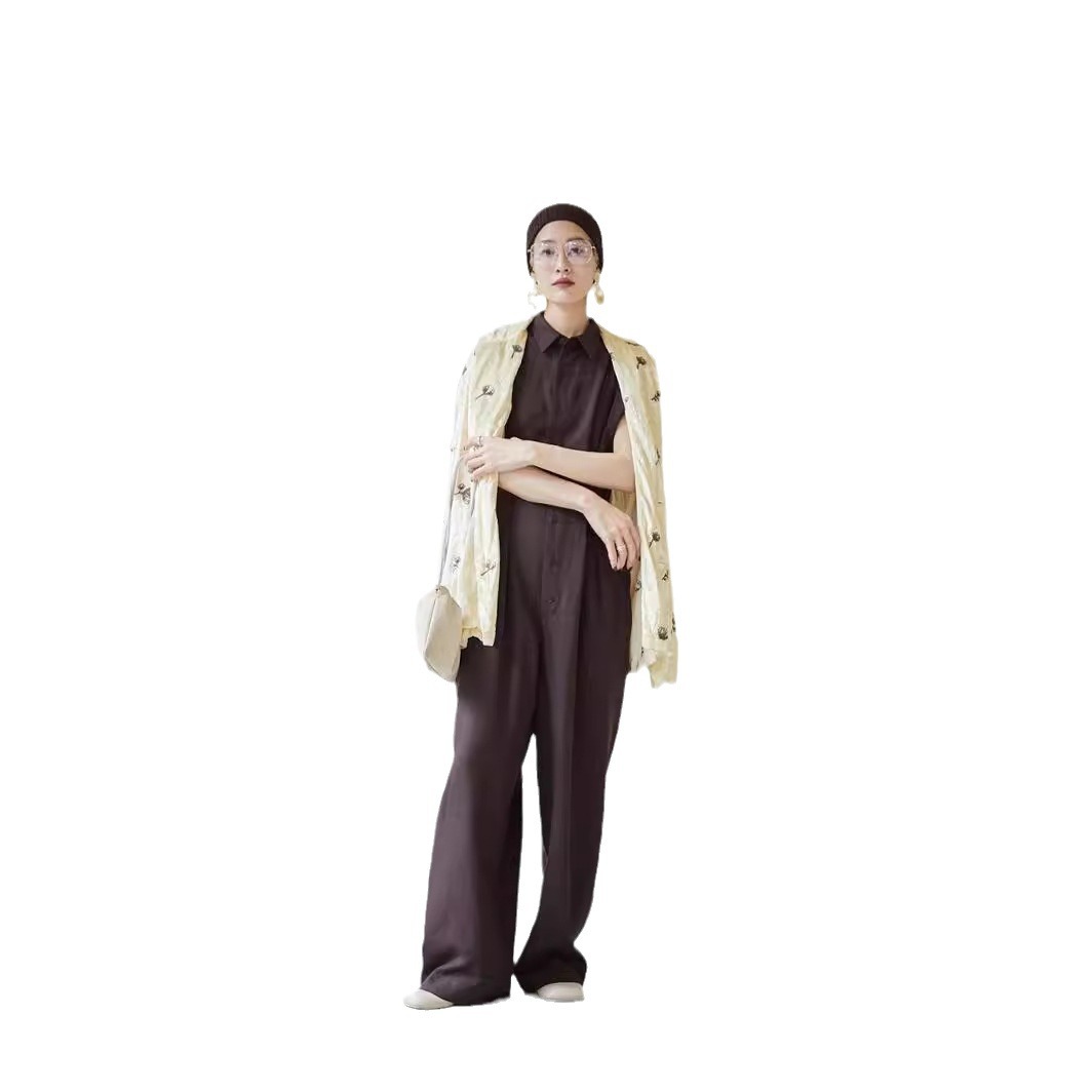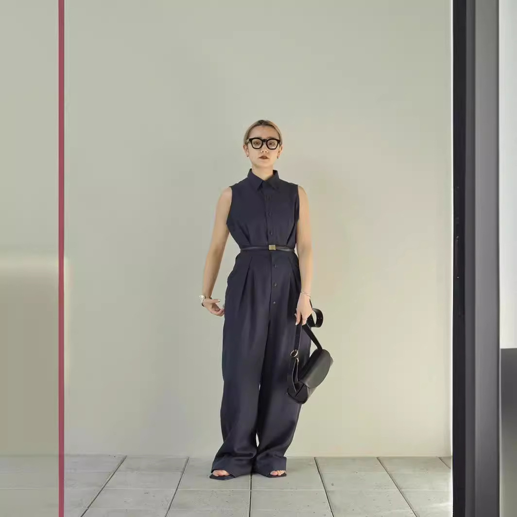 Dry Crane Spring and Summer New Japanese Style Fashionable Simple Elegant Sleeveless Waisted Jumpsuit Cool and Comfortable High Waist Trousers