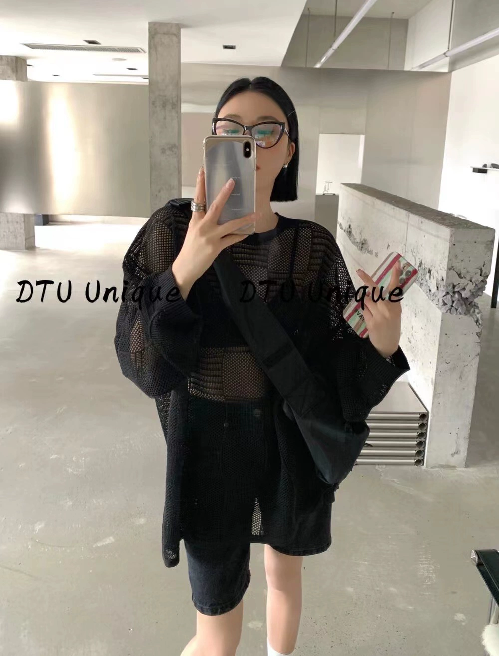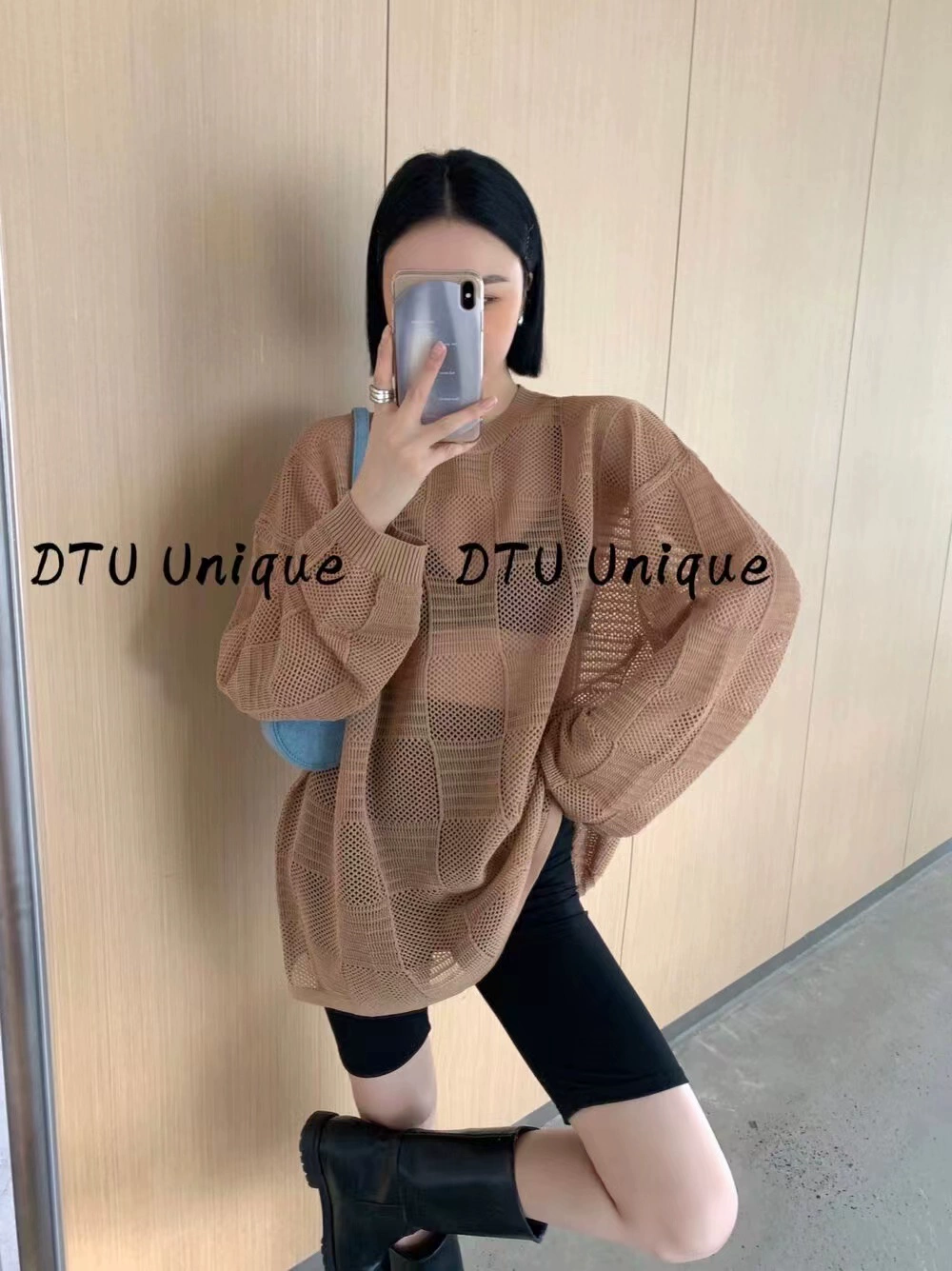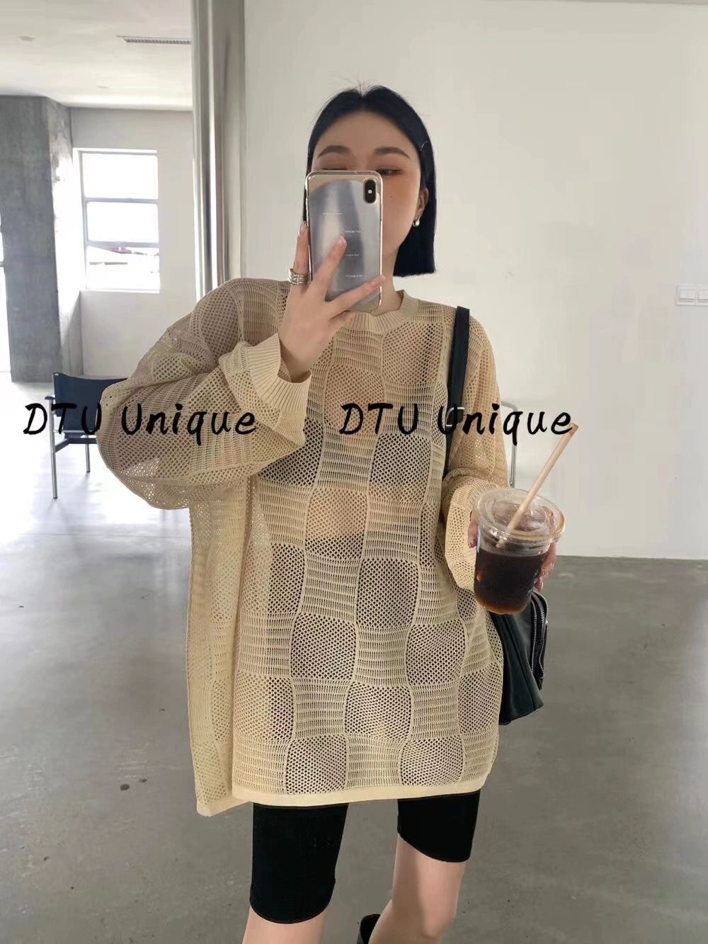 DTU Korean style new plaid hollow casual sun protection shirt for women 2024 spring and summer lazy style loose temperament top INS