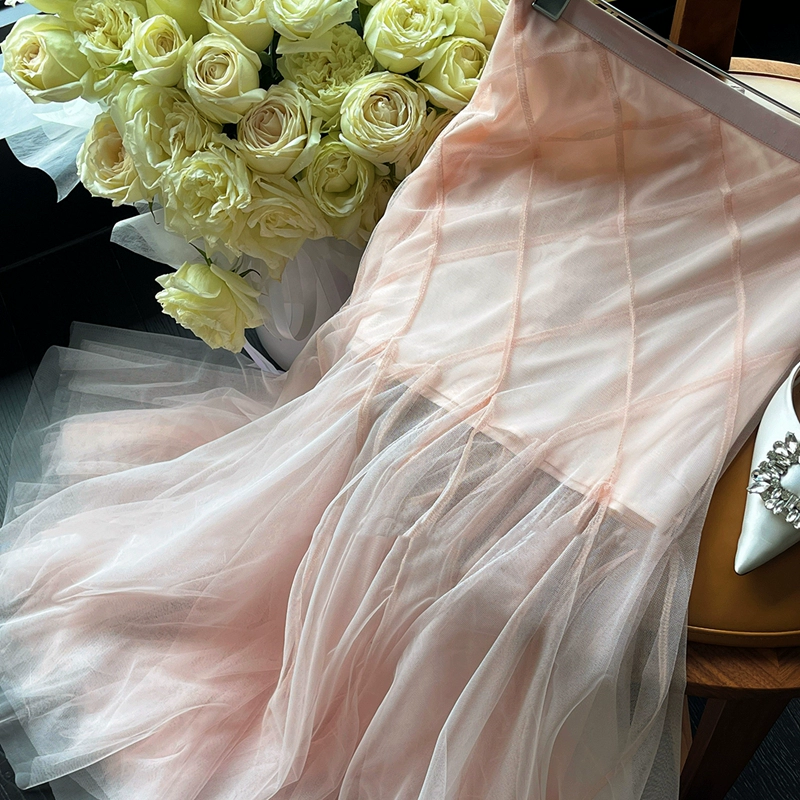 | nameOriginal | DU Haute Couture soft pink lace fishbone strap bra bra long mesh fishtail skirt suit |