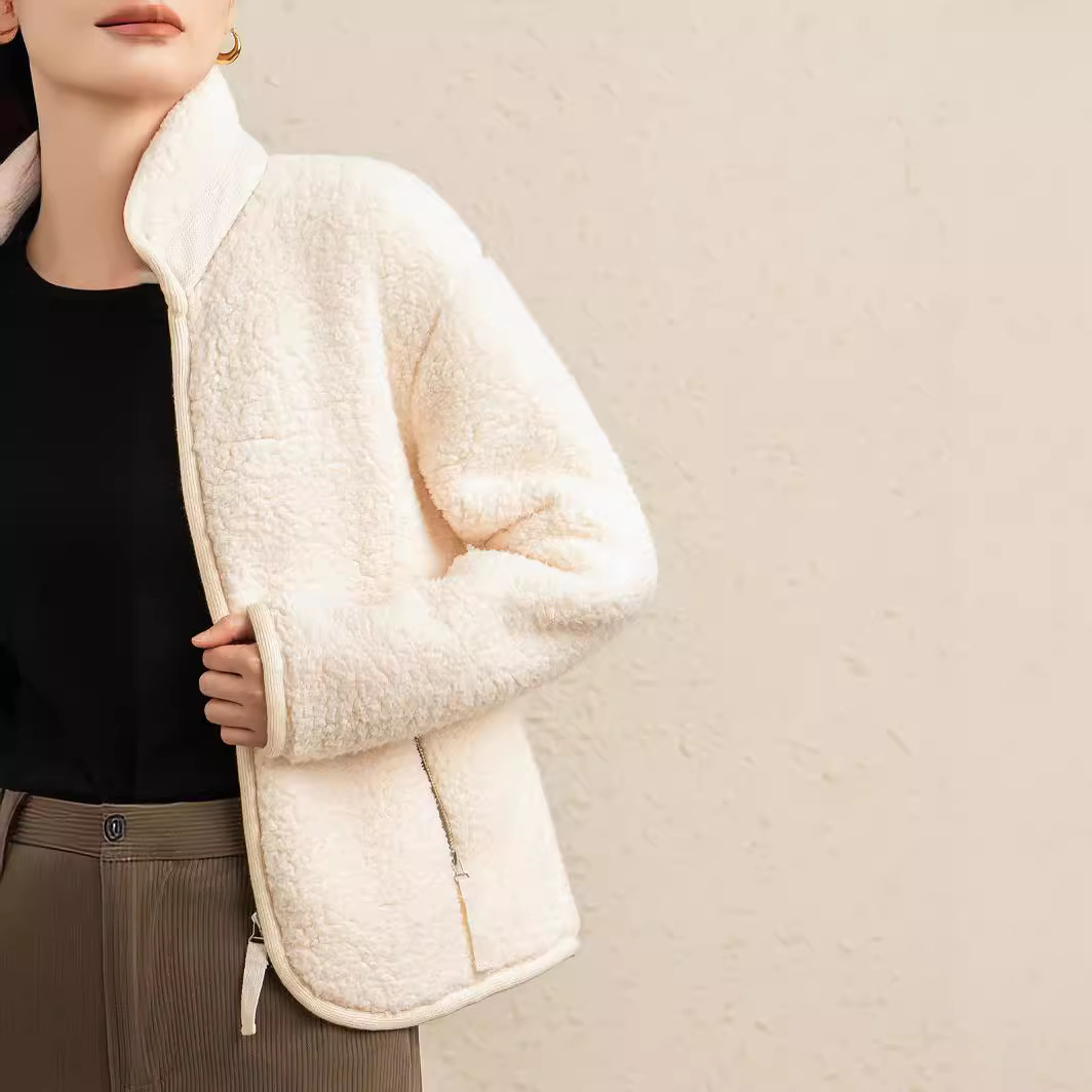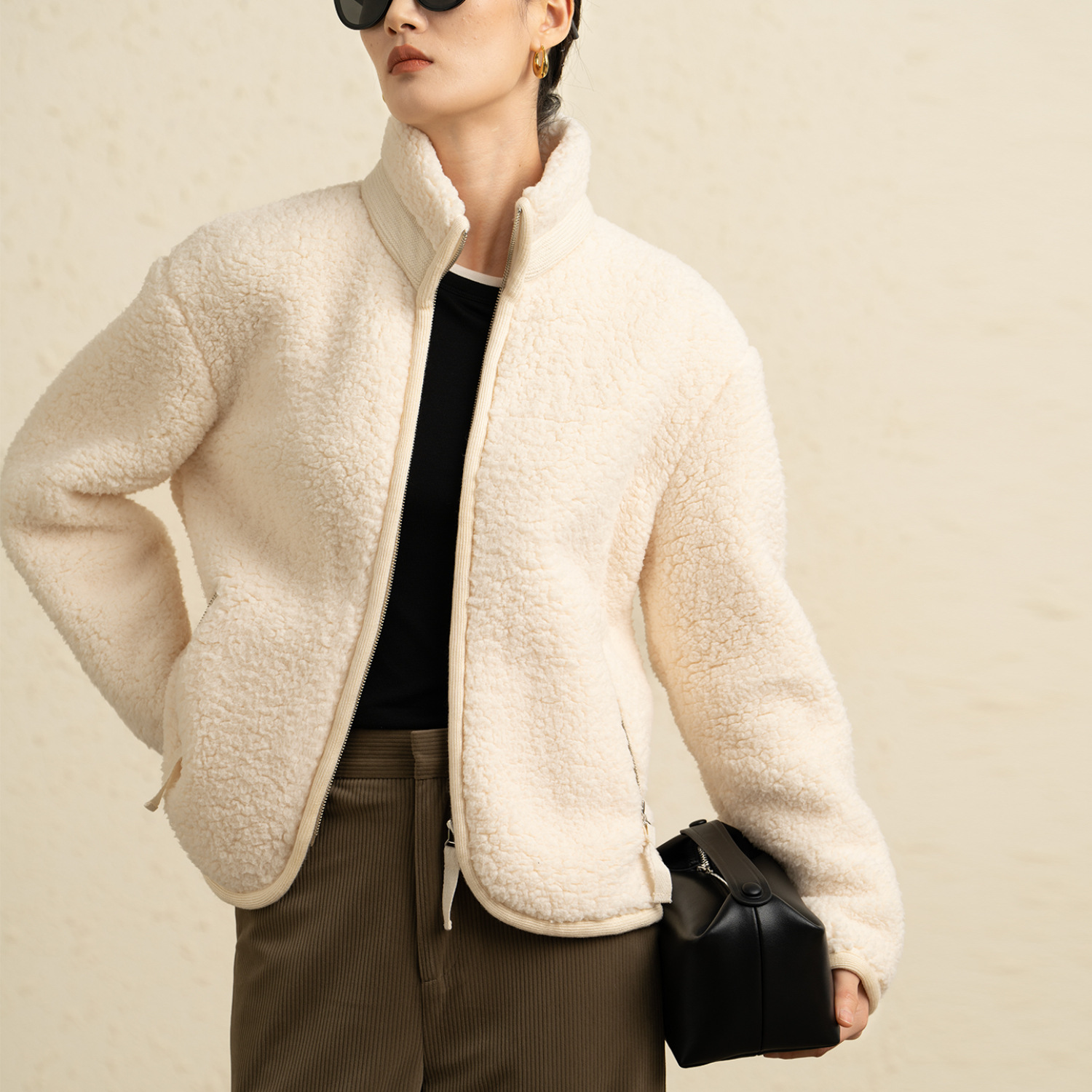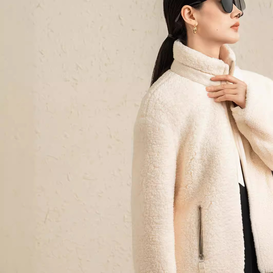 | nameOriginal | du home ~ cream luxury spring jil home light soft glutinous stand collar zipper short coat for women |