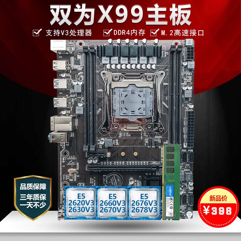 | nameOriginal | Dual brand new x99 motherboard 2011 pin cpu set supports DDR4 memory 2678v3 2680v3 2676v3 |