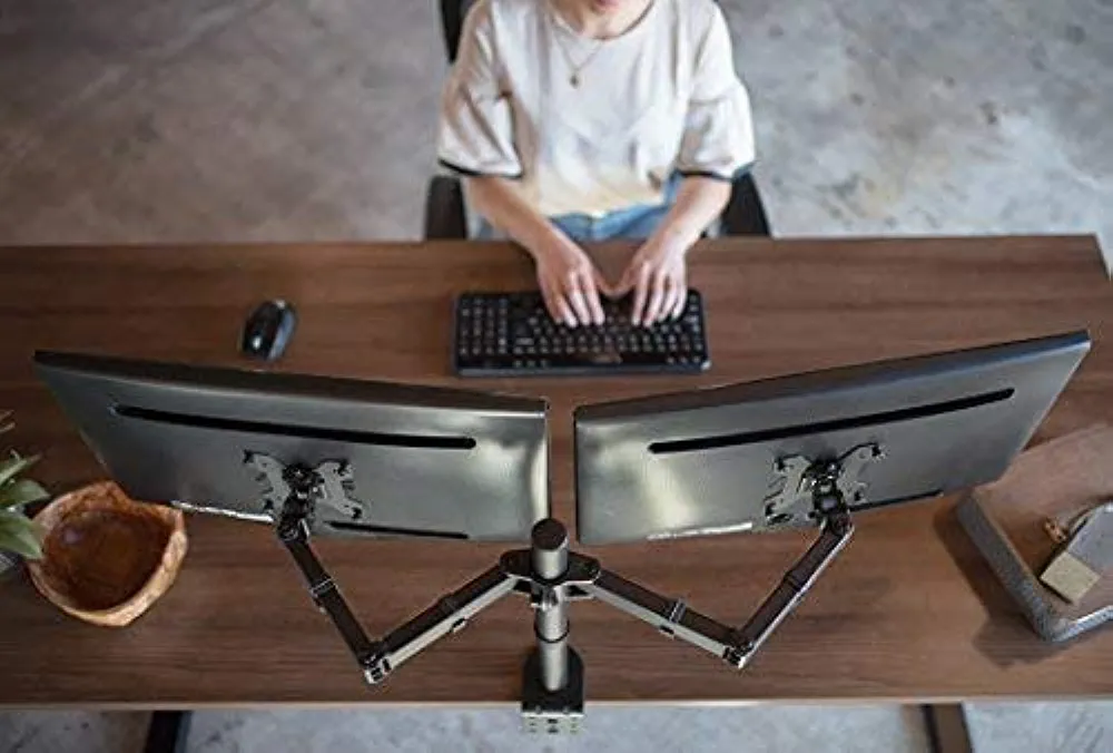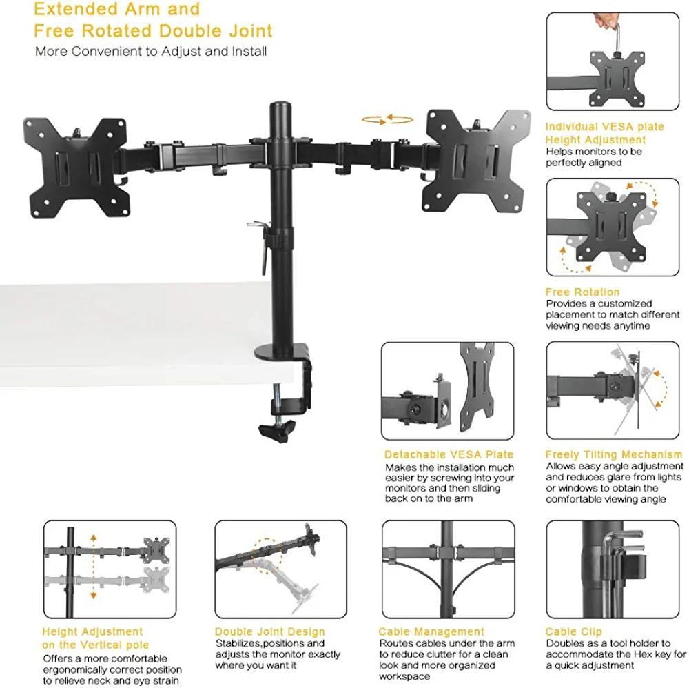 | nameOriginal | BePrincess Dual LCD LED Monitor Desk Mount Stand with C-clamp, Double Monitor Desk Stand, Heavy Duty Fully Adjustable Arms Hold Two (2) Screens up to 27" |