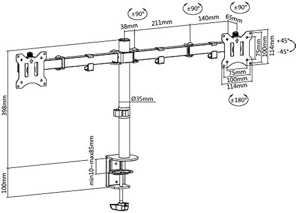 The BePrincess Dual LCD LED Monitor Desk Mount Stand with C-clamp is the perfect solution for those who need to maximize their workspace. This double monitor desk stand is designed to hold two (2) screens up to 27″ in size, allowing you to work more efficiently and comfortably. The heavy-duty fully adjustable arms provide a secure and stable platform for your monitors, while the C-clamp ensures that the stand stays firmly in place on your desk. With its sleek and modern design, this monitor stand is not only functional but also adds a touch of style to your workspace. Whether you’re a gamer, designer, or professional, the BePrincess Dual LCD LED Monitor Desk Mount Stand with C-clamp is the ideal choice for anyone looking to improve their productivity and comfort.